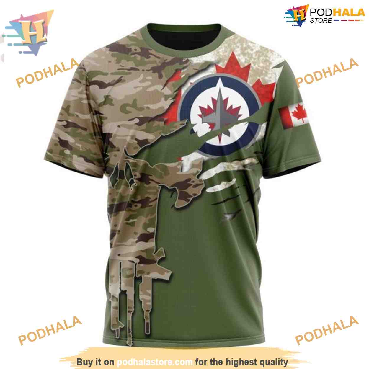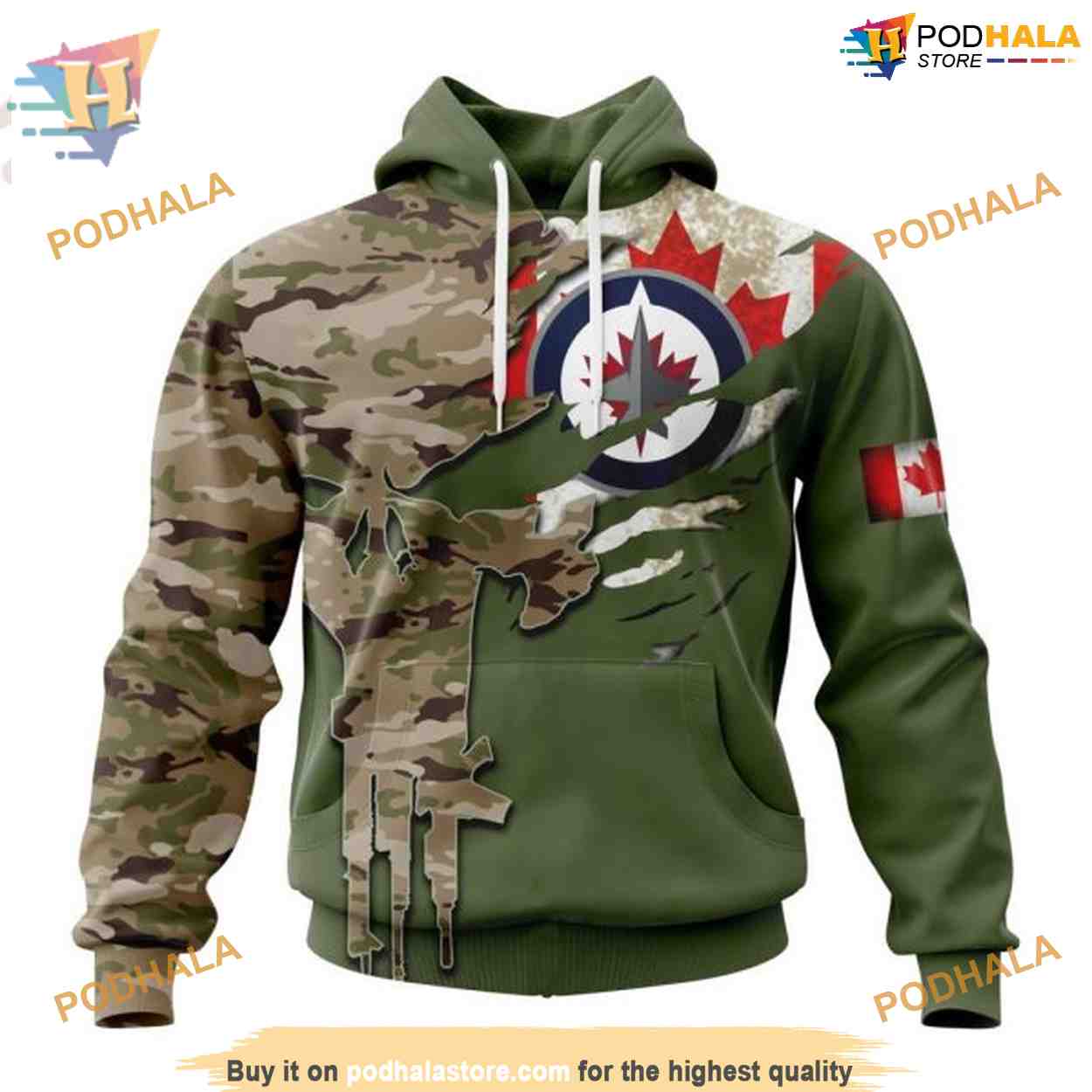 Custom Name And Number Camo Skull Design NHL Winnipeg Jets Hoodie 3D