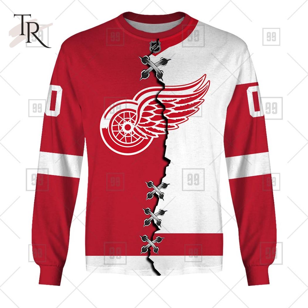 Custom Name And Number NHL Detroit Red Wings Mix Jersey 2023 Tshirt