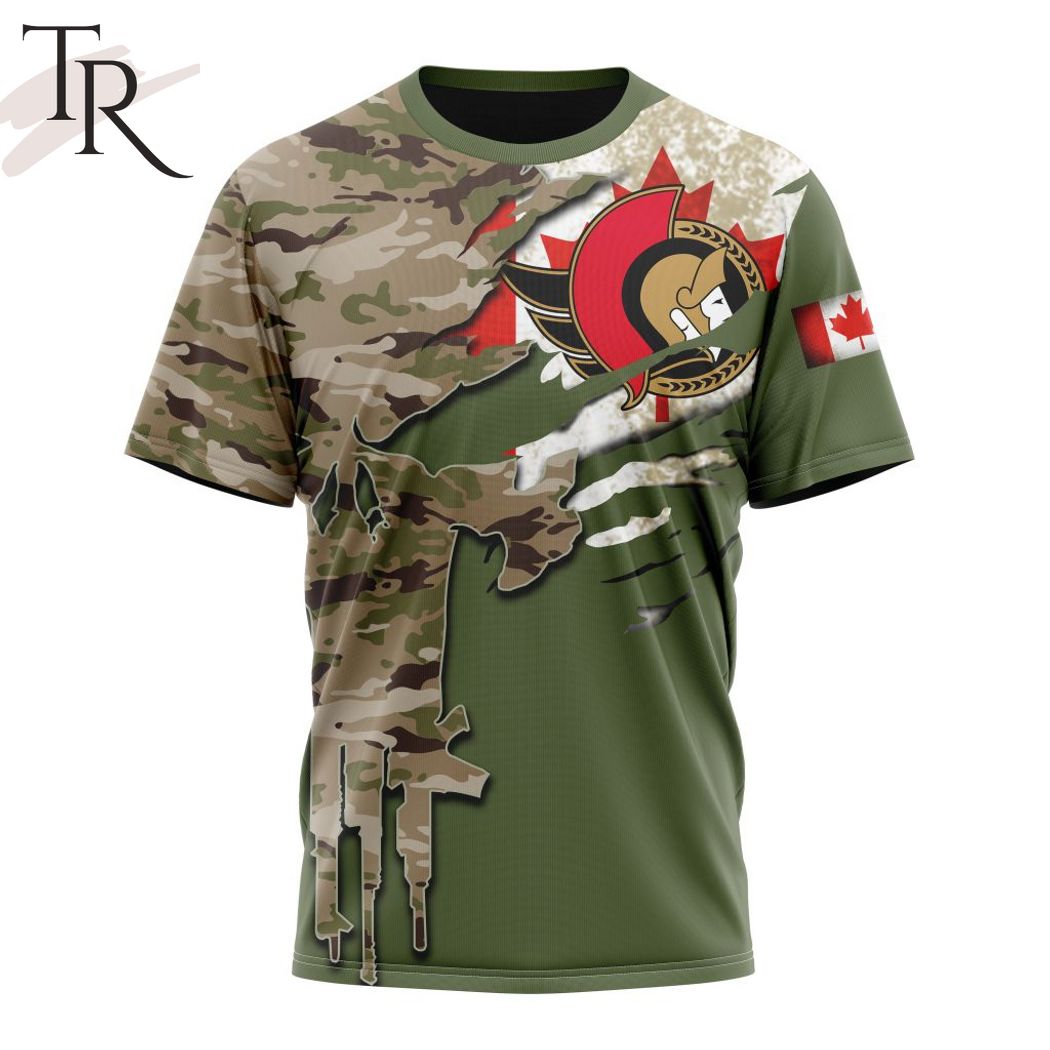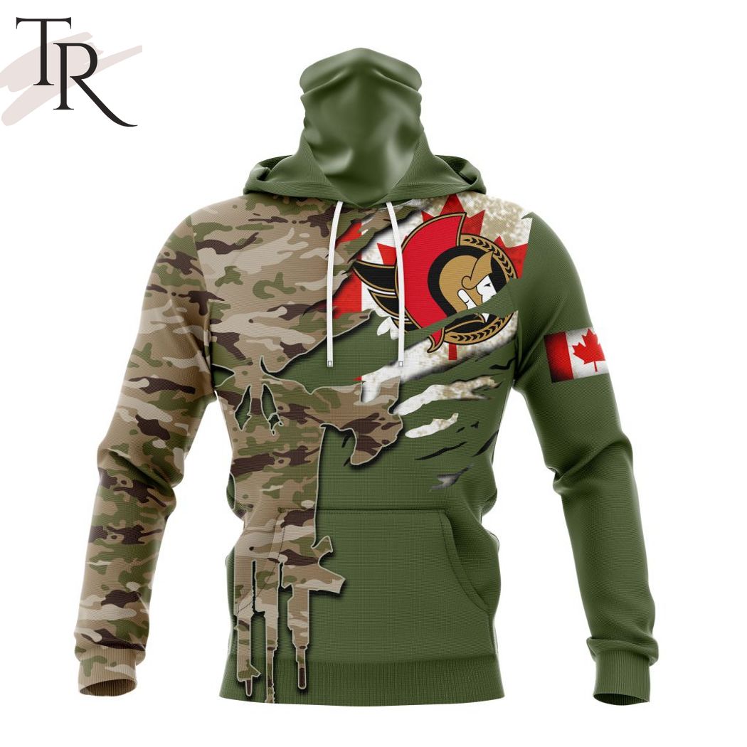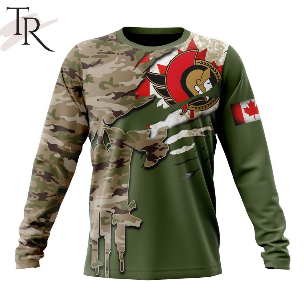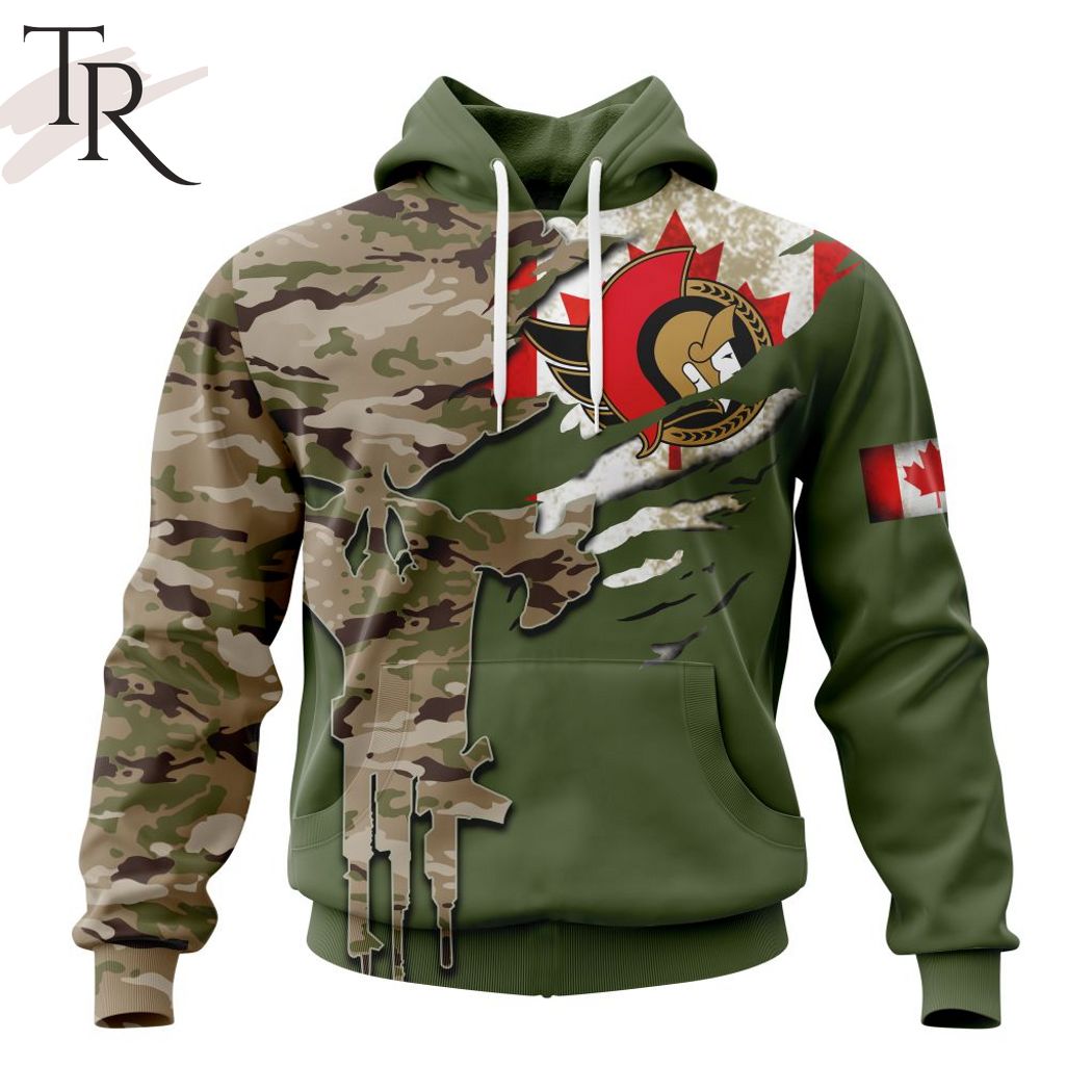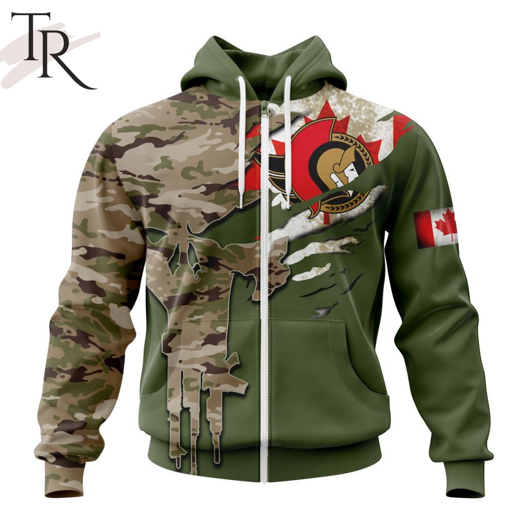 Custom Name And Number NHL Ottawa Senators Special Camo Skull Design Hoodie, Zipper Hoodie, Fleece Hoodie, Long Sleeve Shirt, T-Shirt