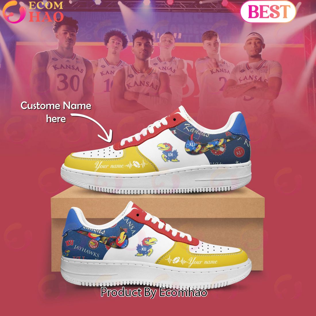 Custom Name NCAA Kansas Jayhawks Special Design Air Force 1 The Custom Name NCAA Kansas Jayhawks Special Design Air Force 1 is a stylish sneaker perfect for the fan of the Kansas Jayhawks. It is designed with a classic white upper and white midsole for a timeless look. The custom design of the shoe includes...