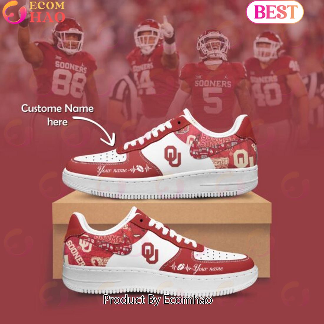 Custom Name NCAA Oklahoma Sooners Special Design Air Force 1 The Custom Name NCAA Oklahoma Sooners Special Design Air Force 1 is perfect for fans of the Oklahoma Sooners. This sneaker sports the iconic Air Force 1 design with special customized detailing that celebrates the spirit of the Sooners. The upper and midsole boast Oklahoma...