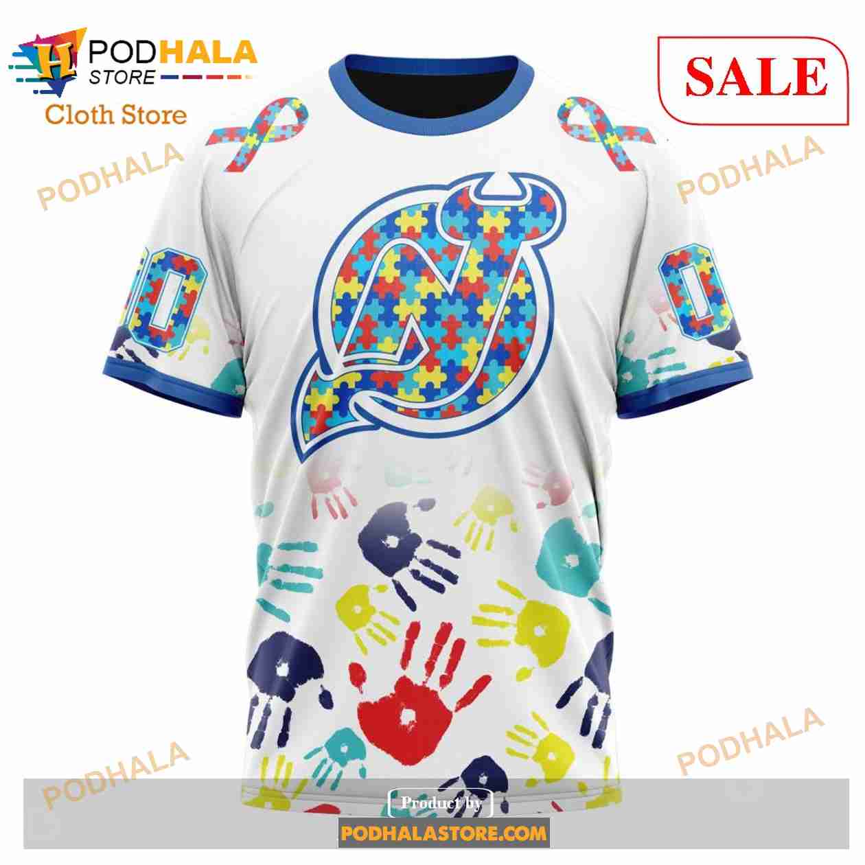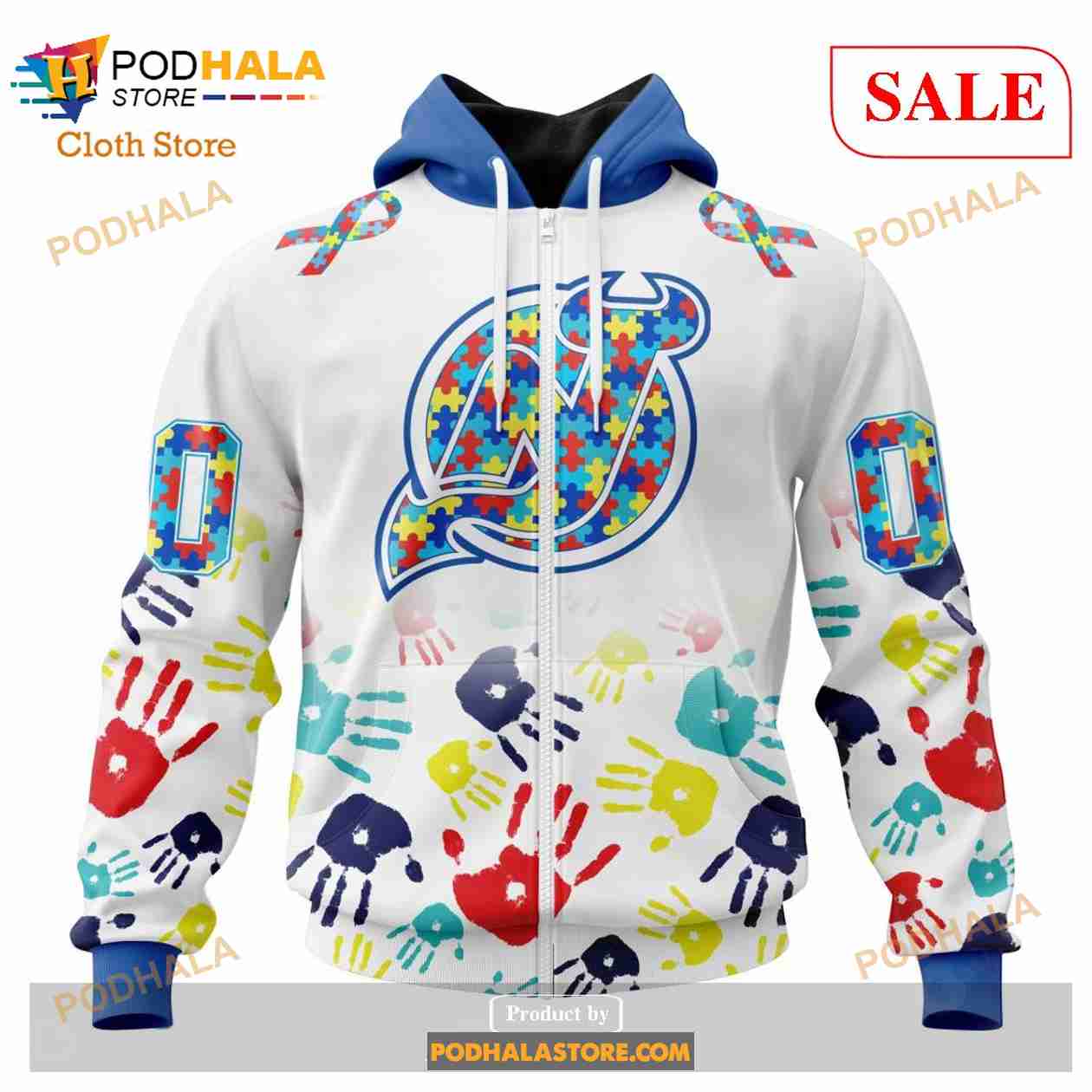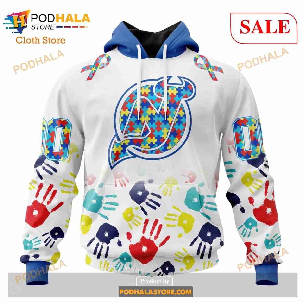 Custom New Jersey Devils Autism Awareness Design NHL Hoodie 3D