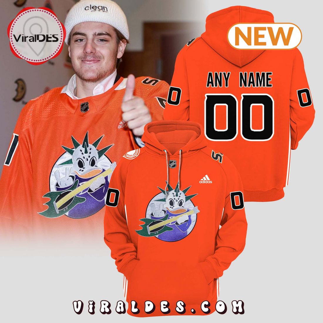 Custom NHL Anaheim Ducks Orange Design Hoodie