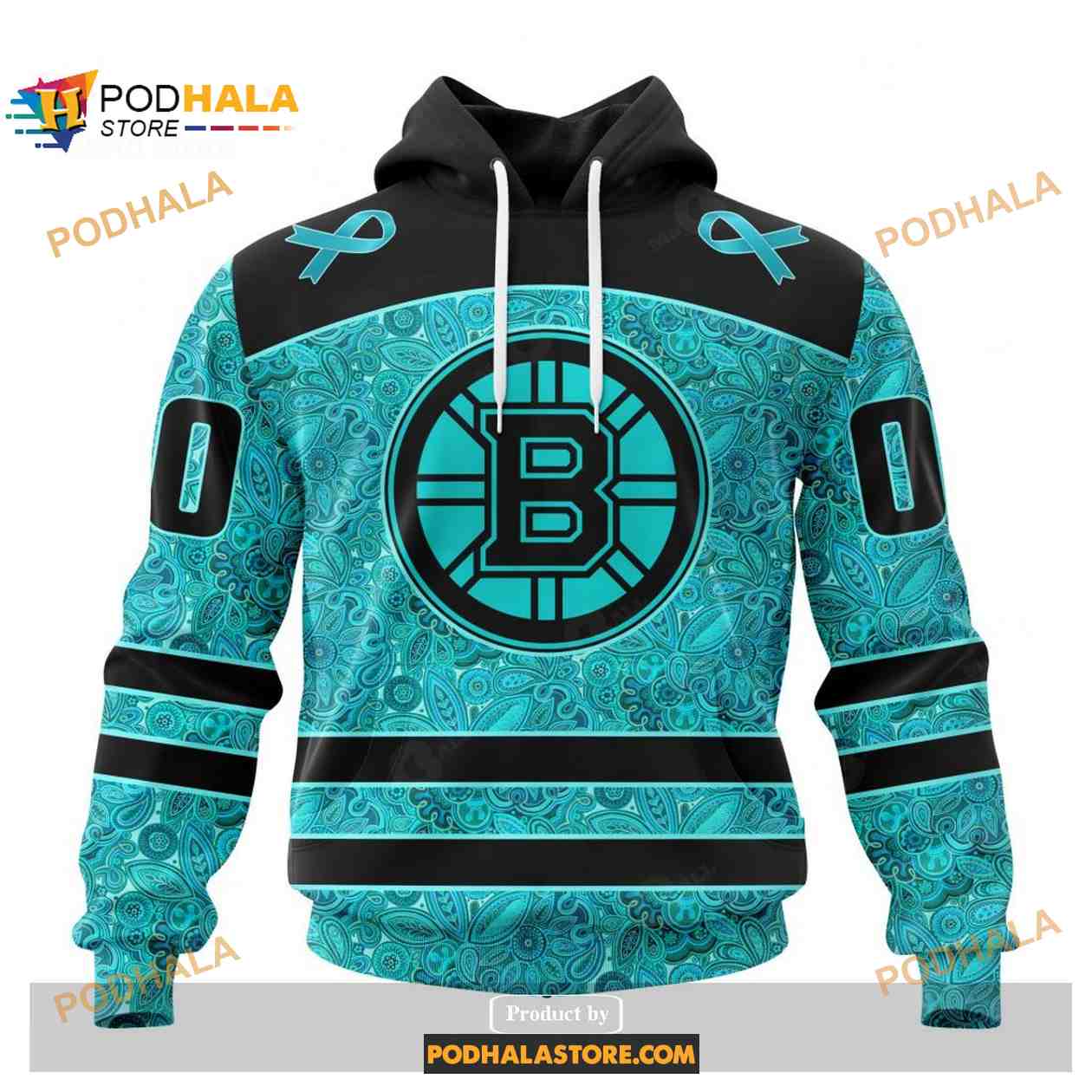Custom NHL Boston Bruins Fight Ovarian Cancer Shirt Hoodie 3D