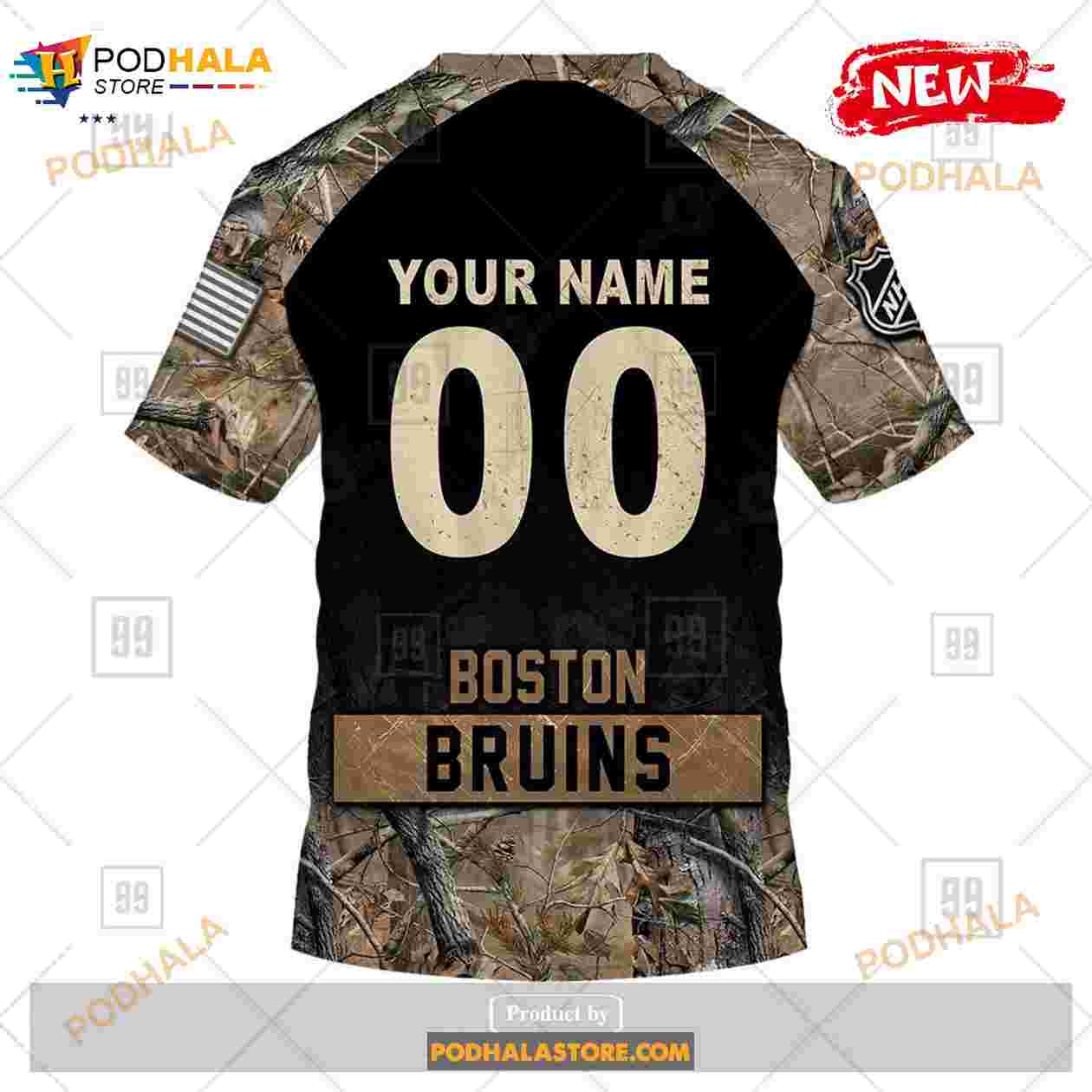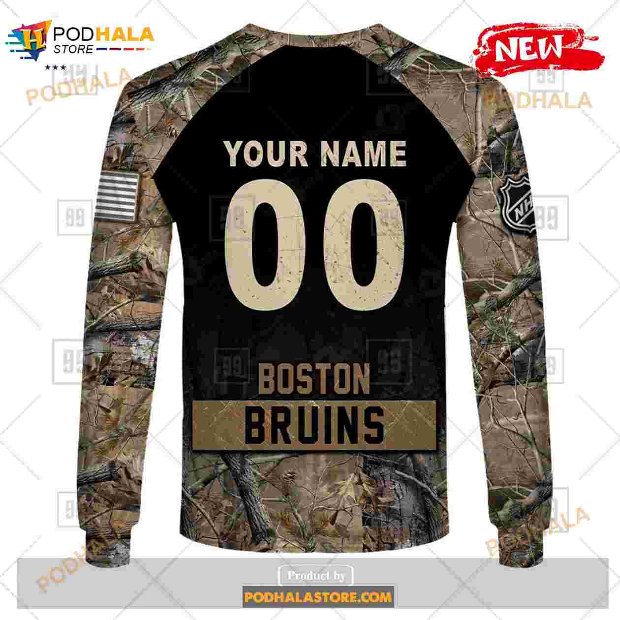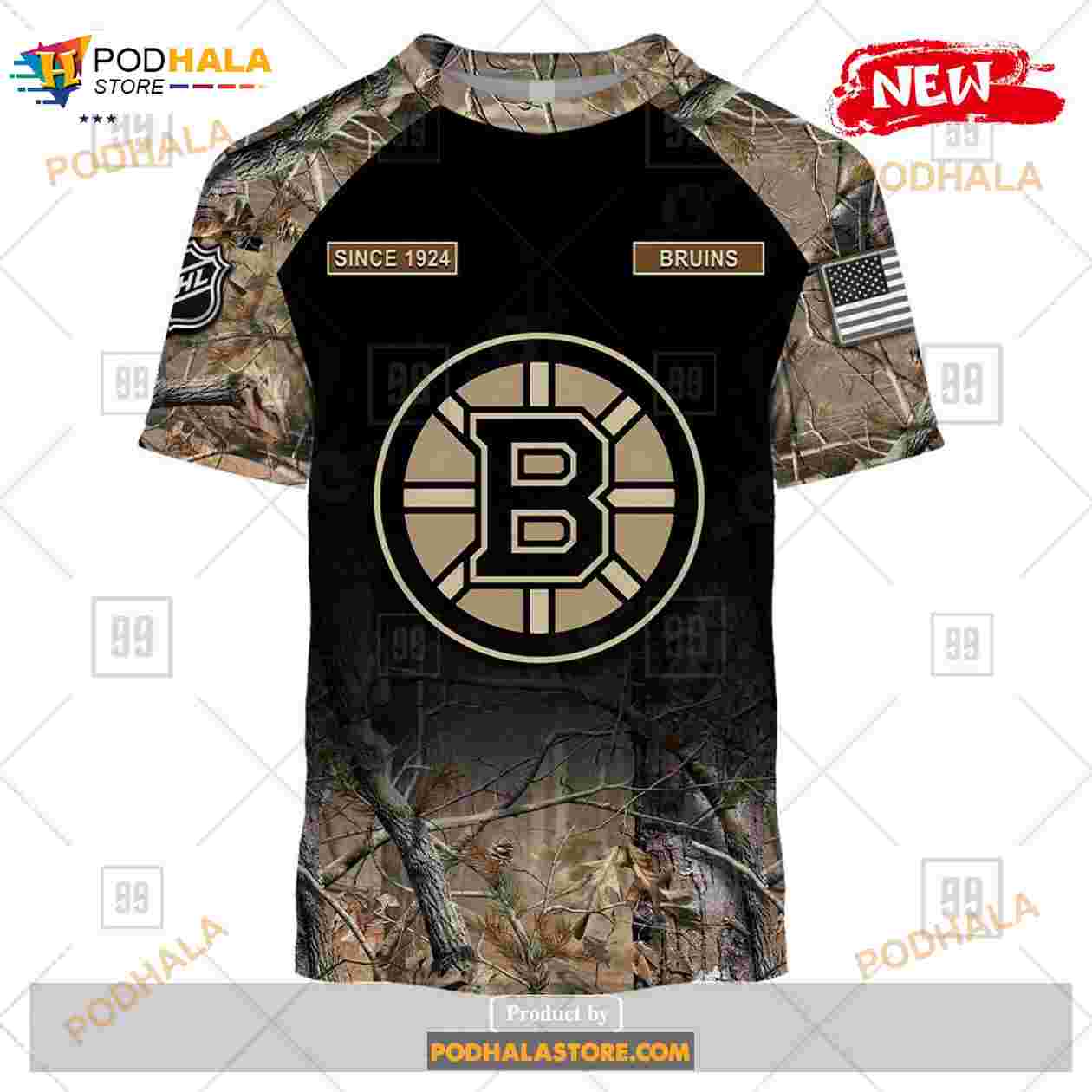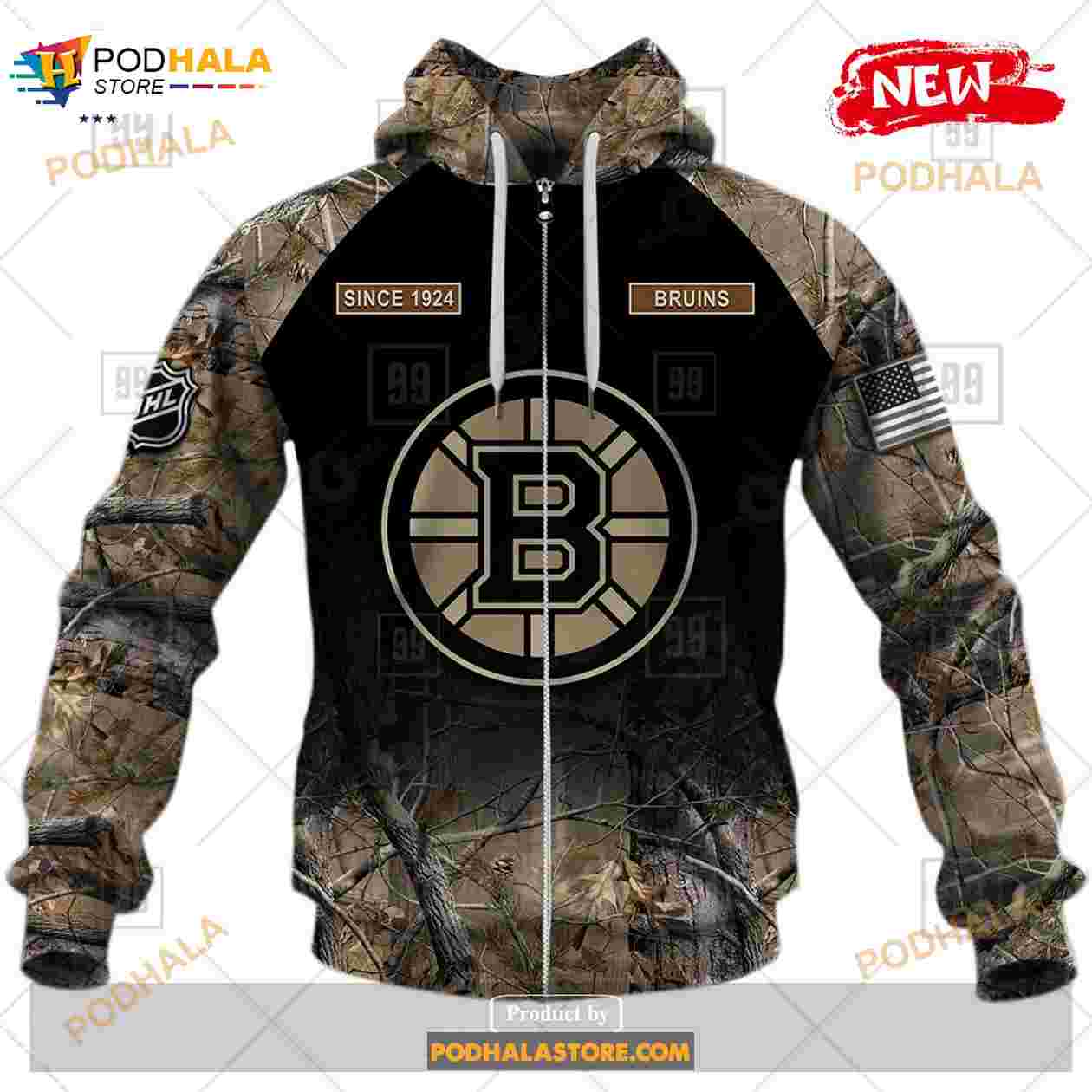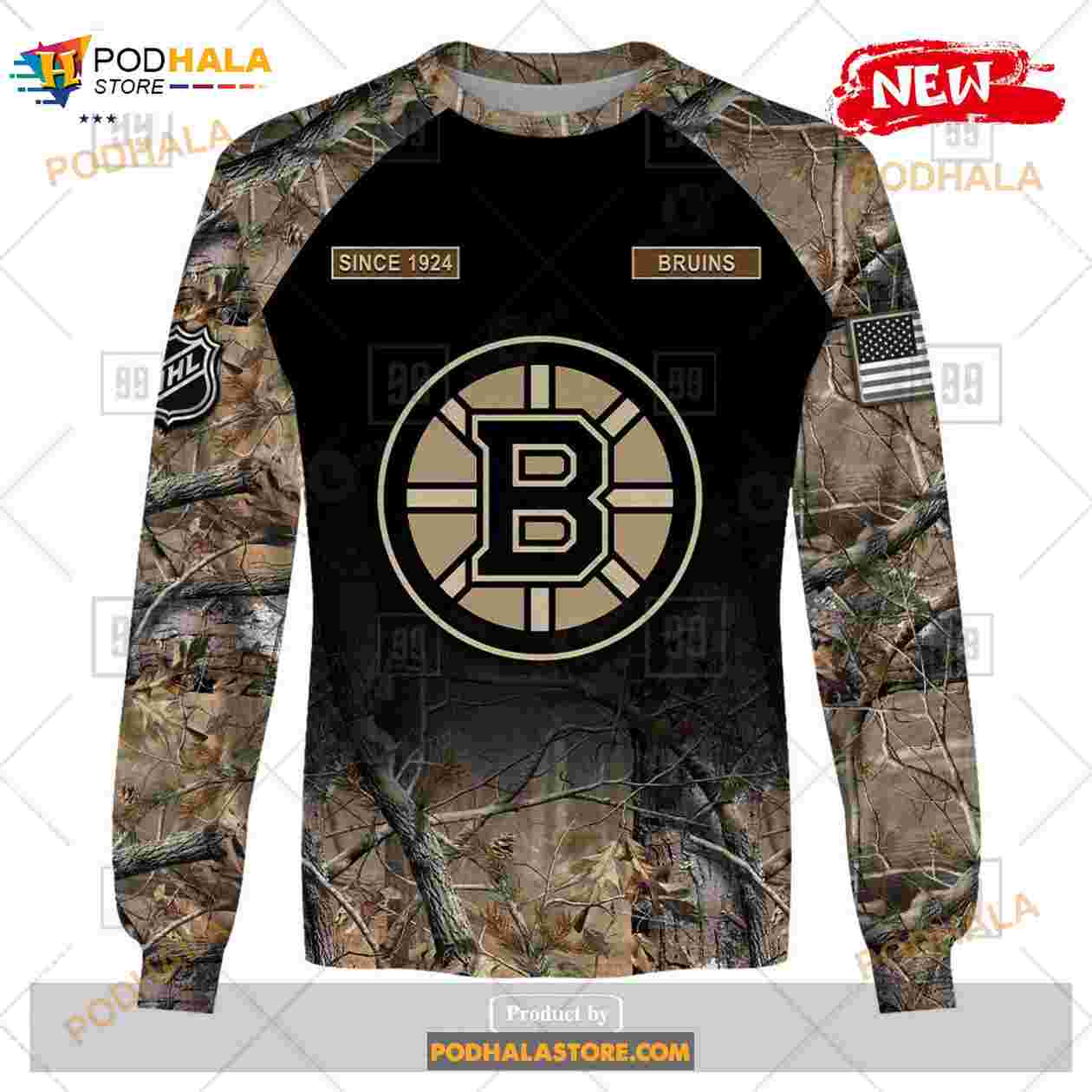 Custom NHL Boston Bruins Hunting Camouflage Design Hoodie Sweatshirt Shirt 3D