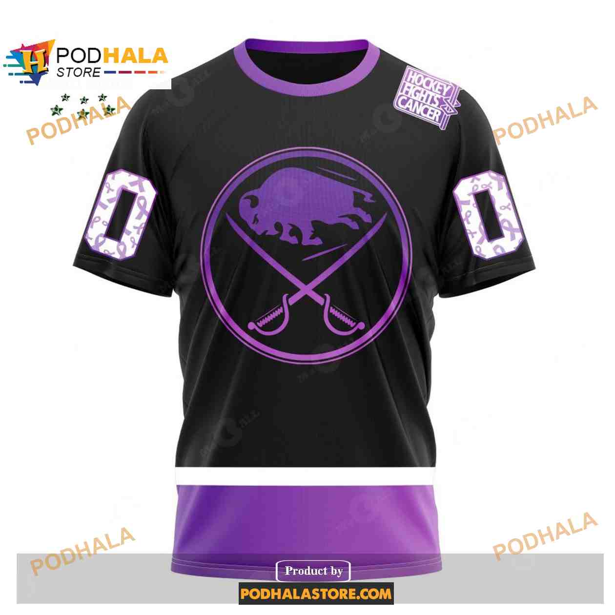 Custom NHL Buffalo Sabres Black Hockey Fights Cancer Shirt Hoodie 3D