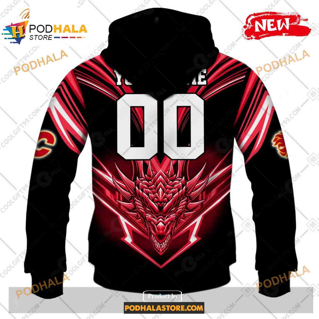Custom NHL Calgary Flames Dragon Design Shirt Hoodie 3D