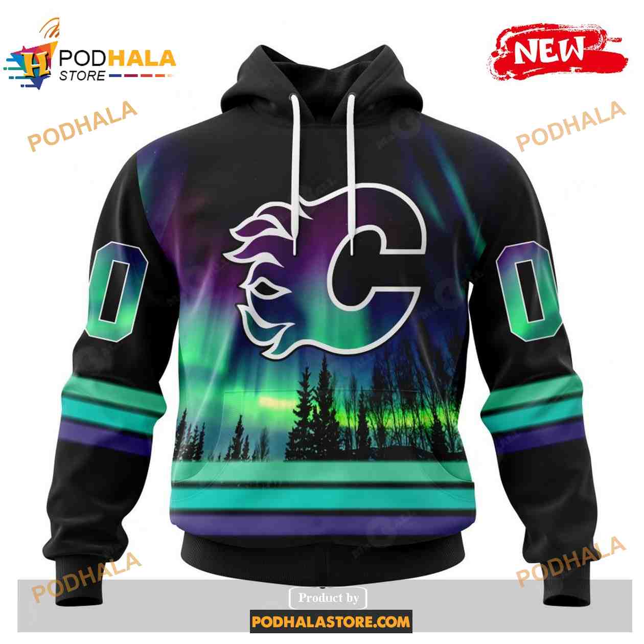 Custom NHL Calgary Flames With Northern Lights Shirt Hoodie 3D