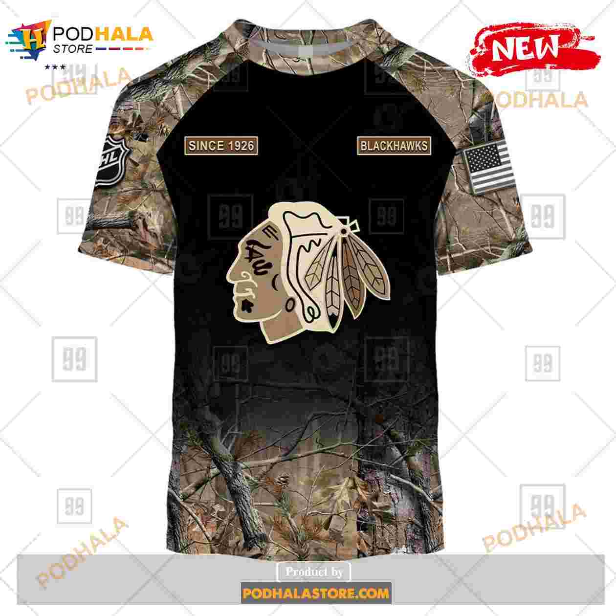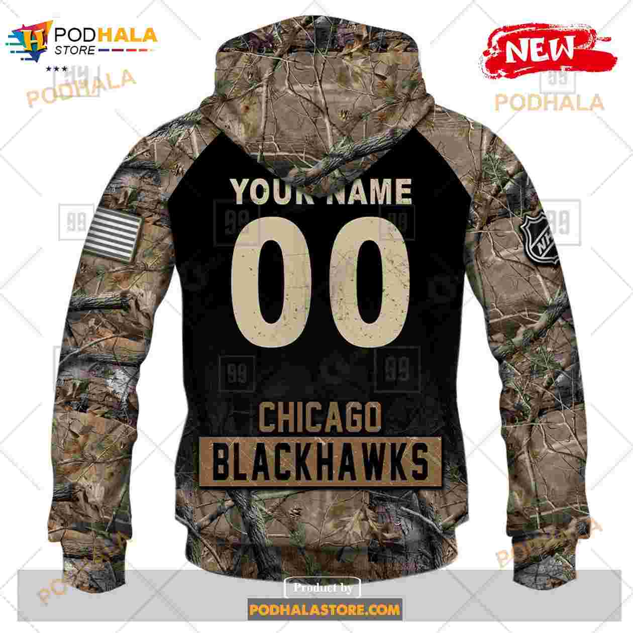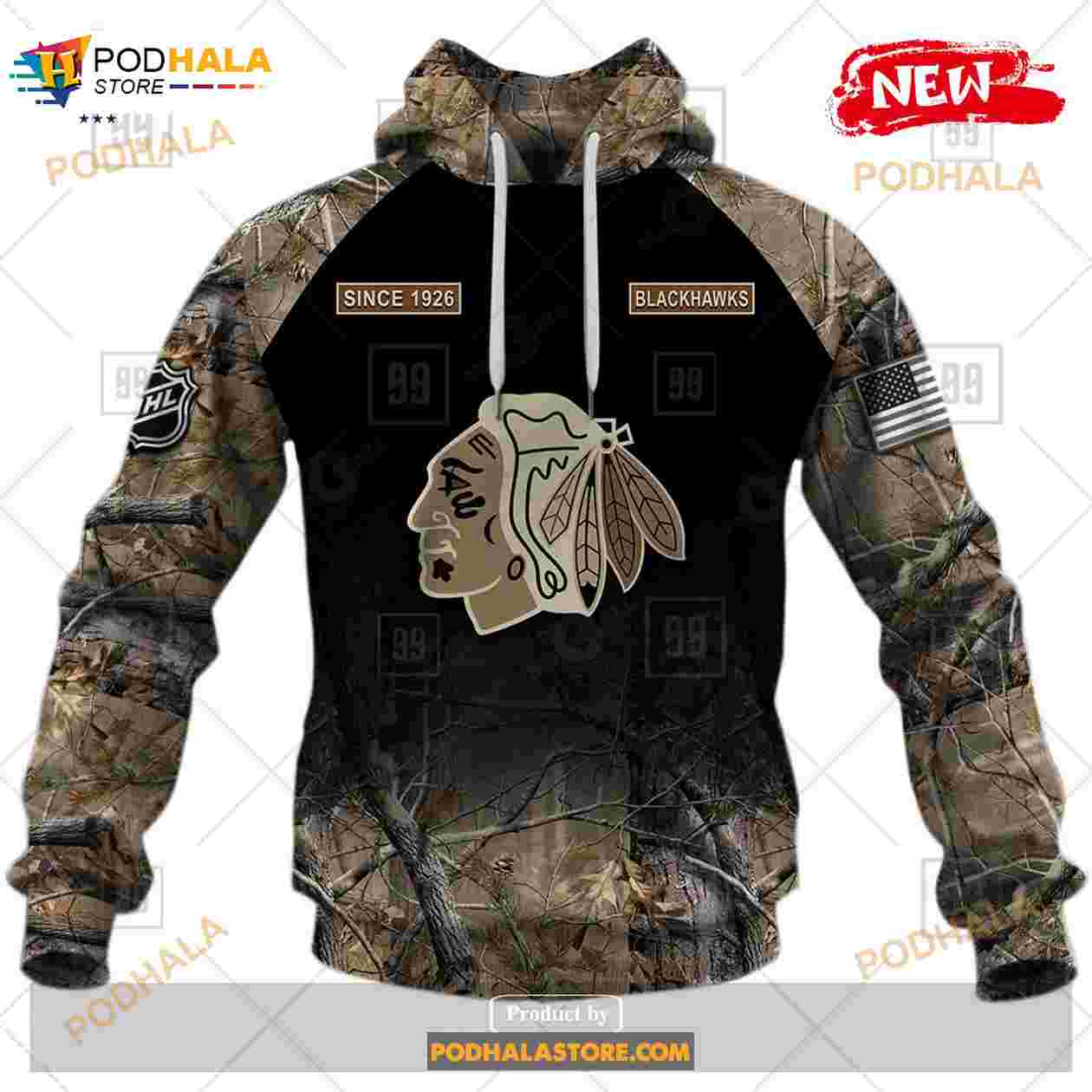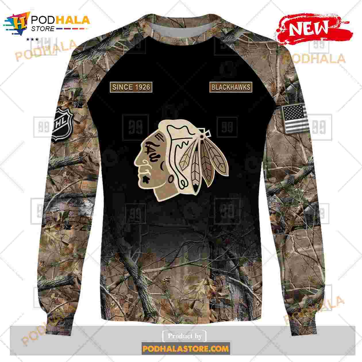 Custom NHL Chicago Blackhawks Hunting Camouflage Design Hoodie Sweatshirt Shirt 3D