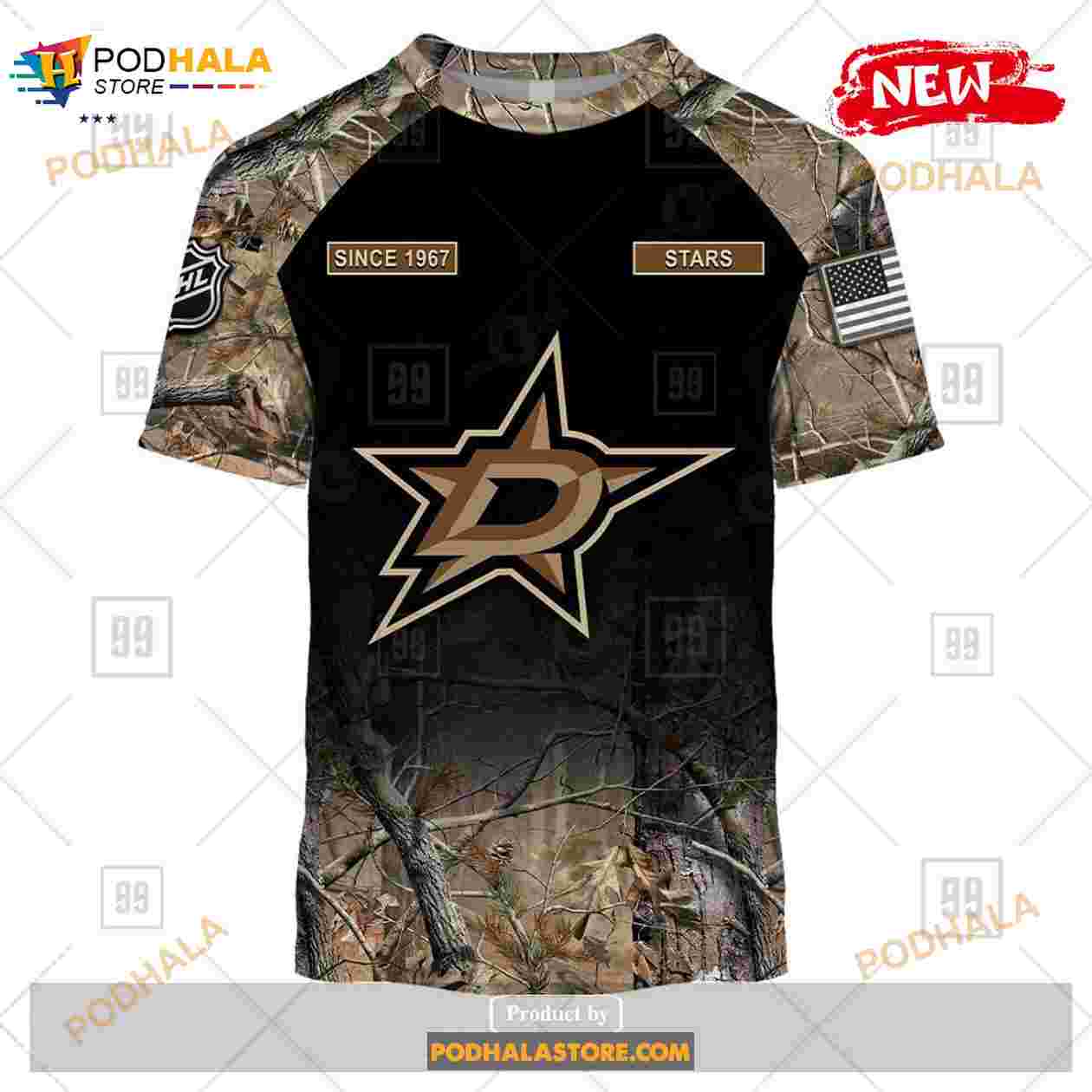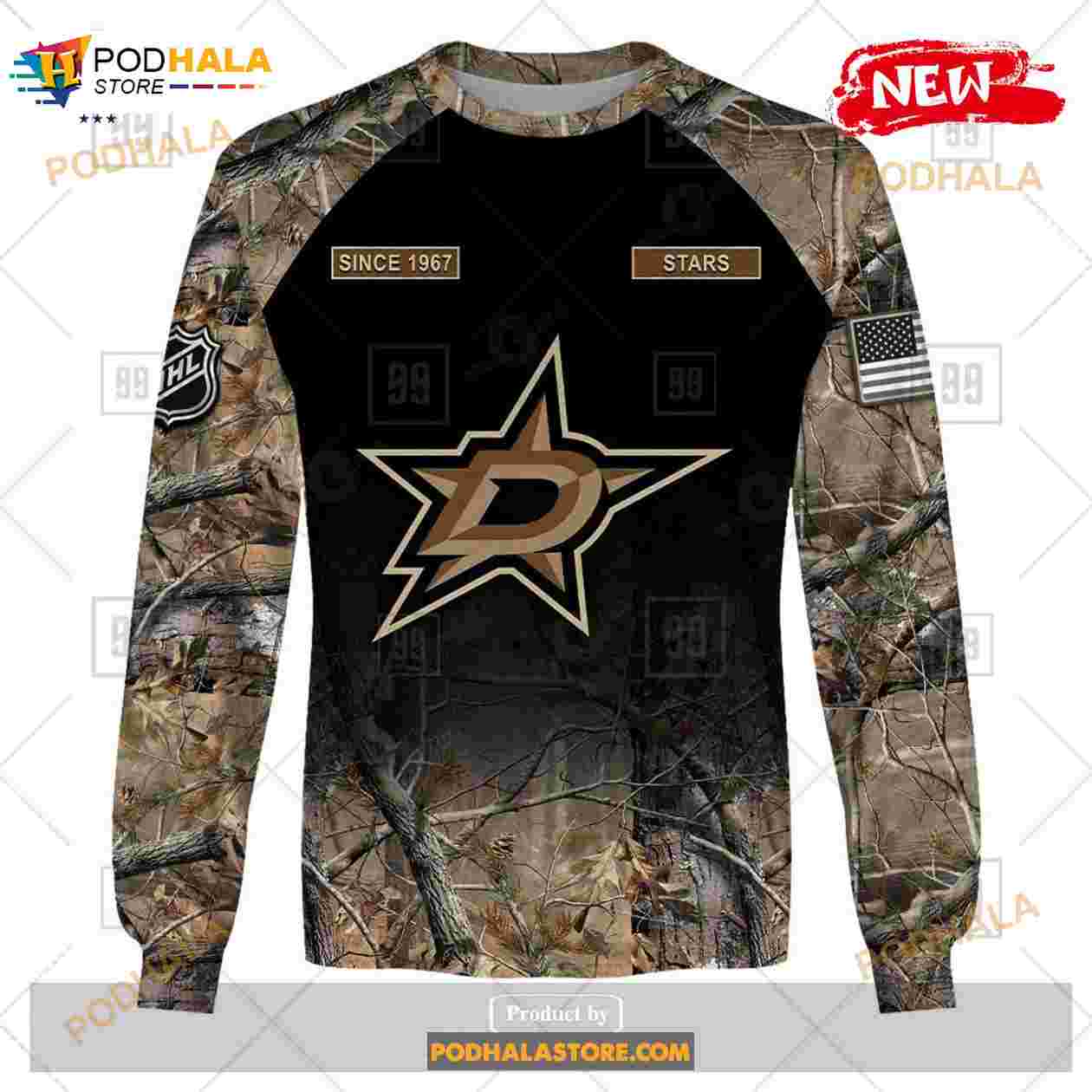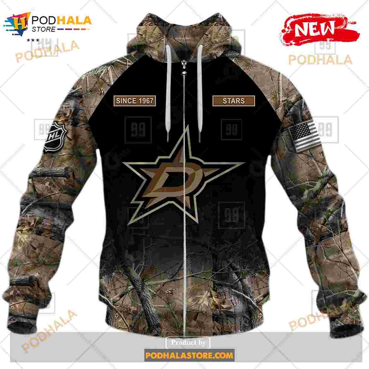 Custom NHL Dallas Stars Hunting Camouflage Design Hoodie Sweatshirt Shirt 3D