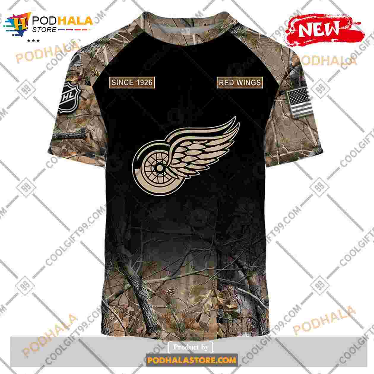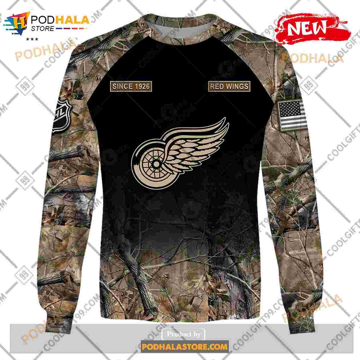 Custom NHL Detroit Red Wings Hunting Camouflage Design Hoodie Sweatshirt Shirt 3D