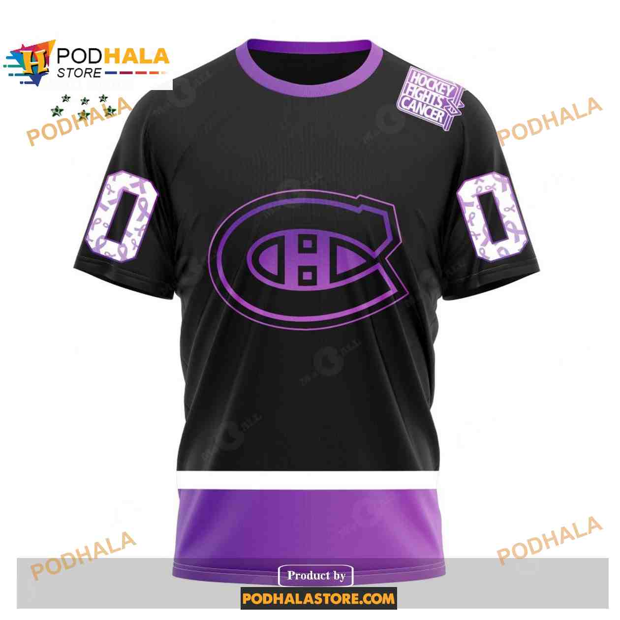 Custom NHL Montreal Canadiens Black Hockey Fights Cancer Shirt Hoodie 3D