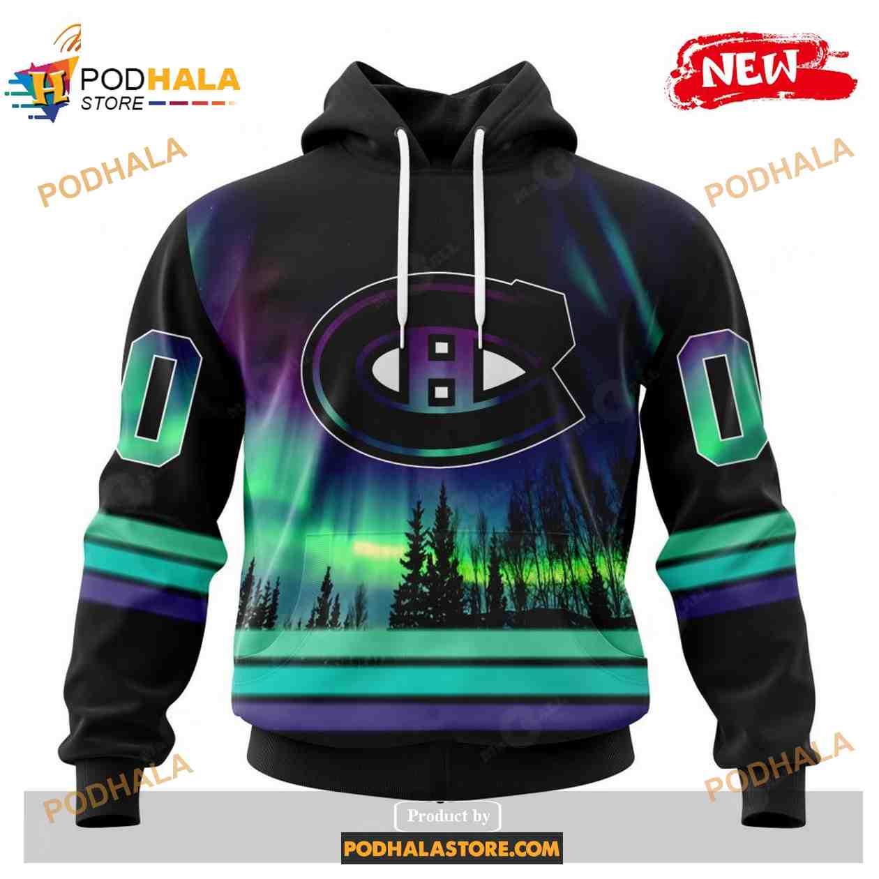 Custom NHL Montreal Canadiens With Northern Lights Shirt Hoodie 3D