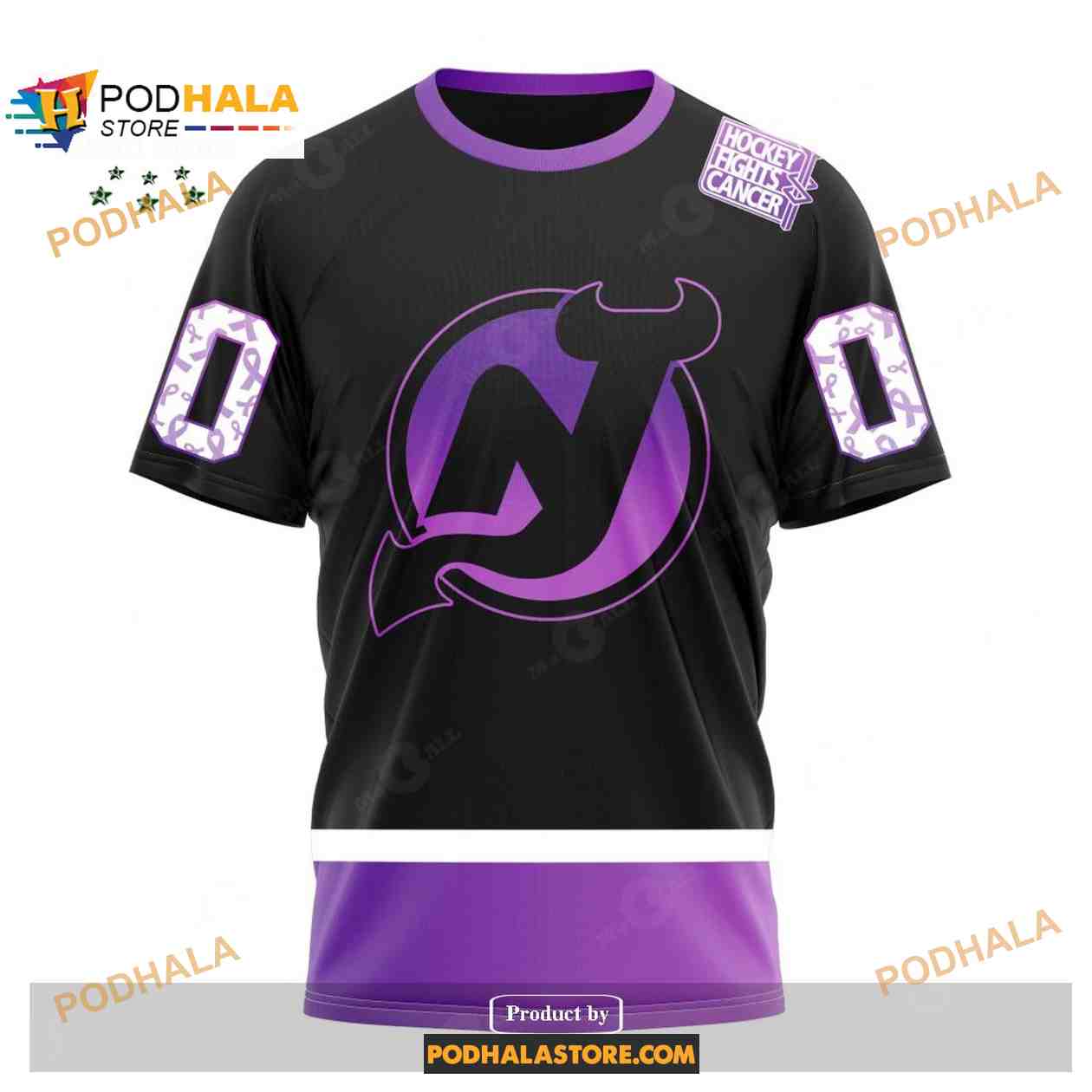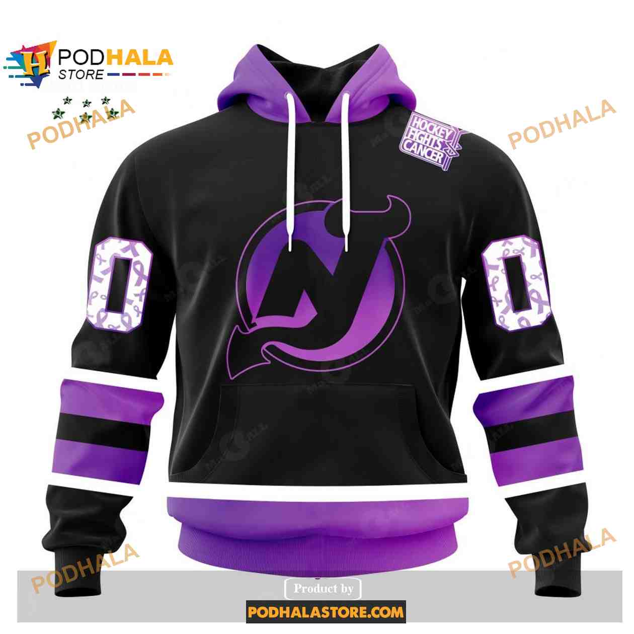 Custom NHL New Jersey Devils Black Hockey Fights Cancer Shirt Hoodie 3D