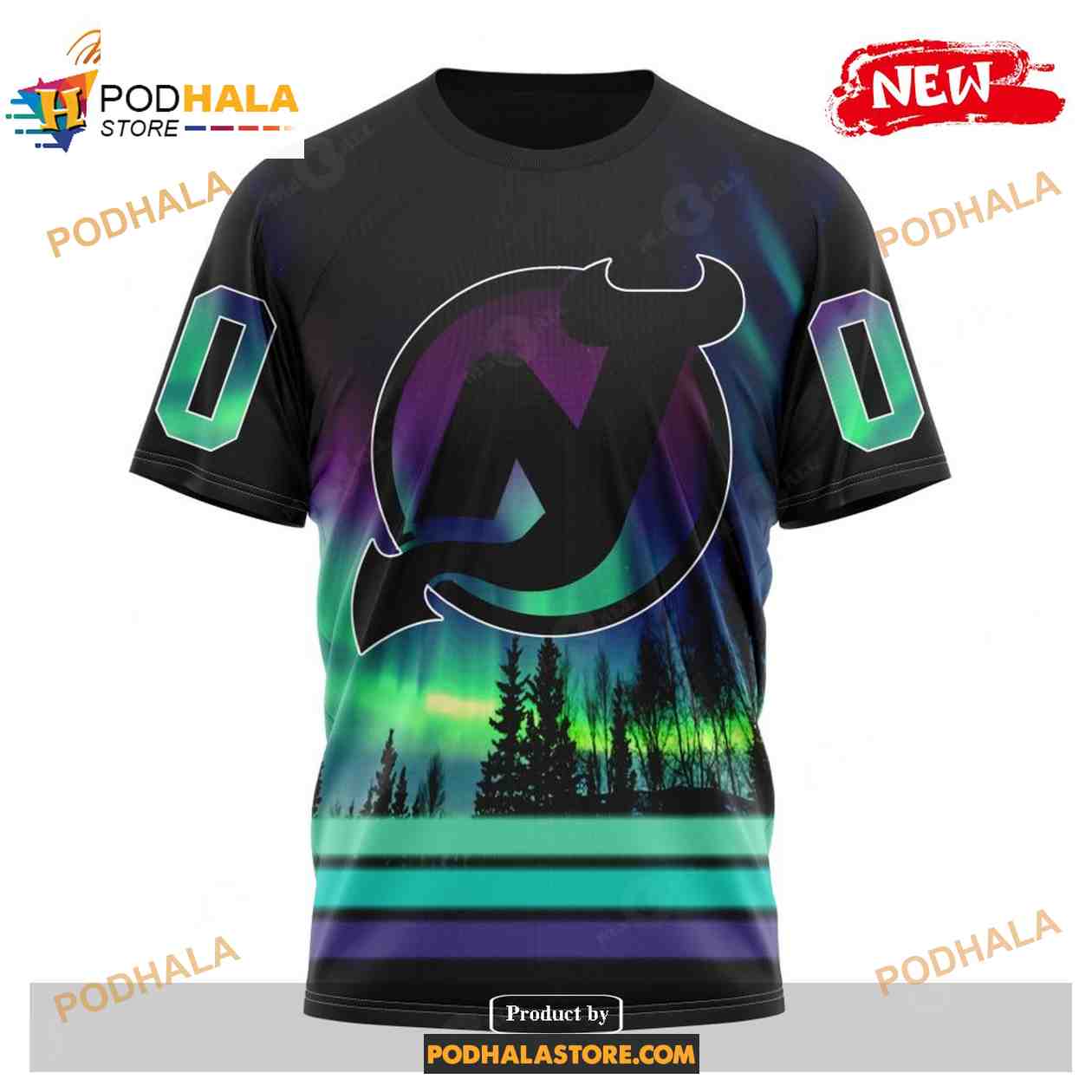 Custom NHL New Jersey Devils With Northern Lights Shirt Hoodie 3D