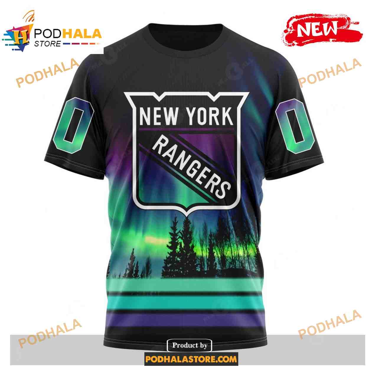 Custom NHL New York Rangers With Northern Lights Shirt Hoodie 3D
