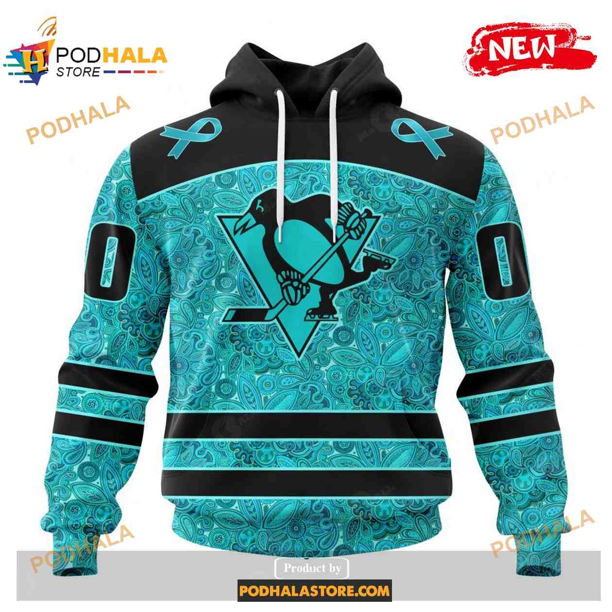 Custom NHL Pittsburgh Penguins Blue Design Fight Ovarian Cancer Shirt Hoodie 3D