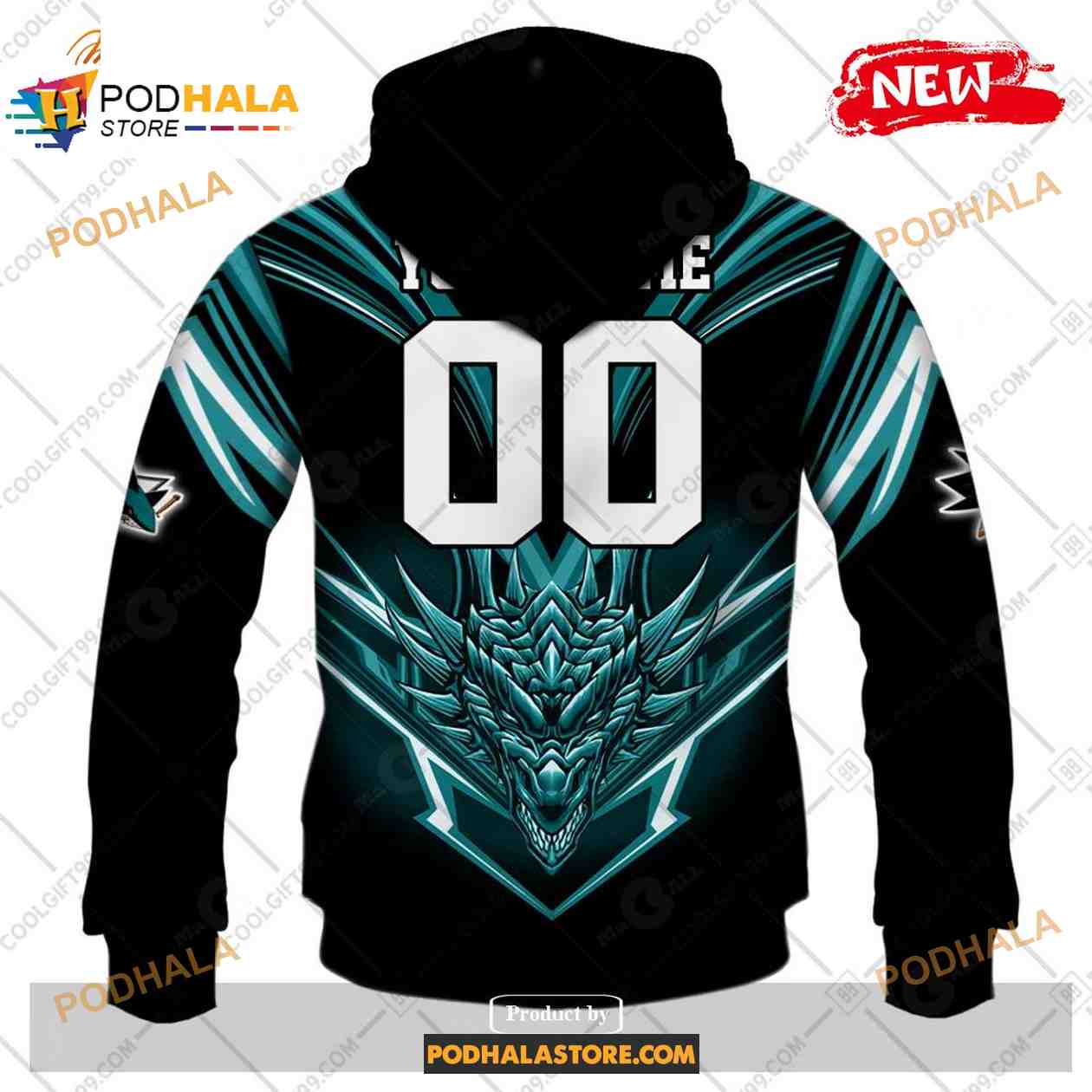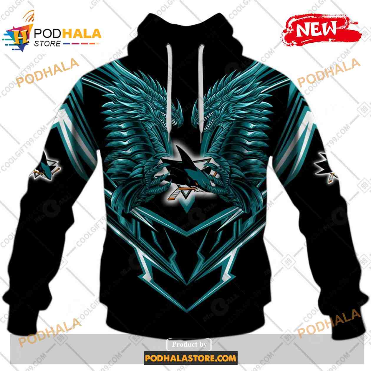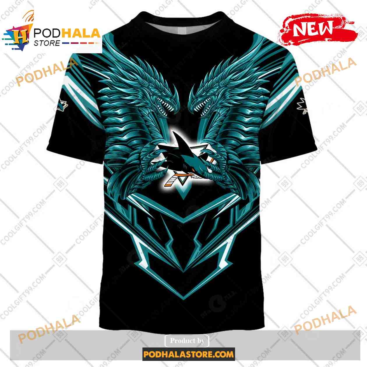 Custom NHL San Jose Sharks Dragon Design Shirt Hoodie 3D