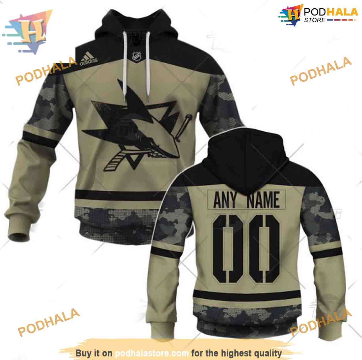 Custom NHL San Jose Sharks Hoodie 3D, Camo Military Practice Jersey Shirt