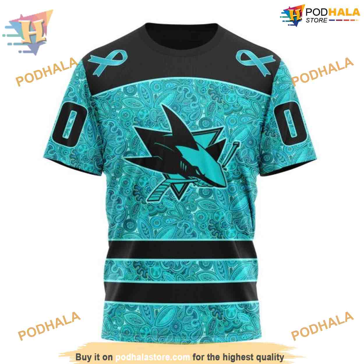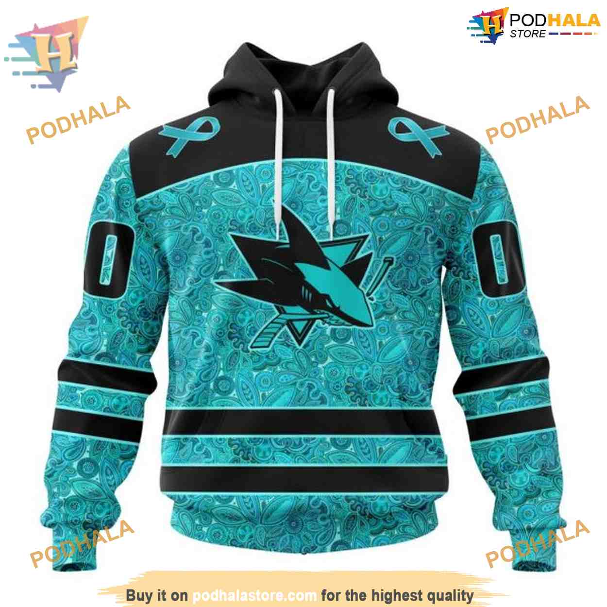 Custom NHL San Jose Sharks Hoodie 3D, Design Fight Ovarian Cancer Shirt