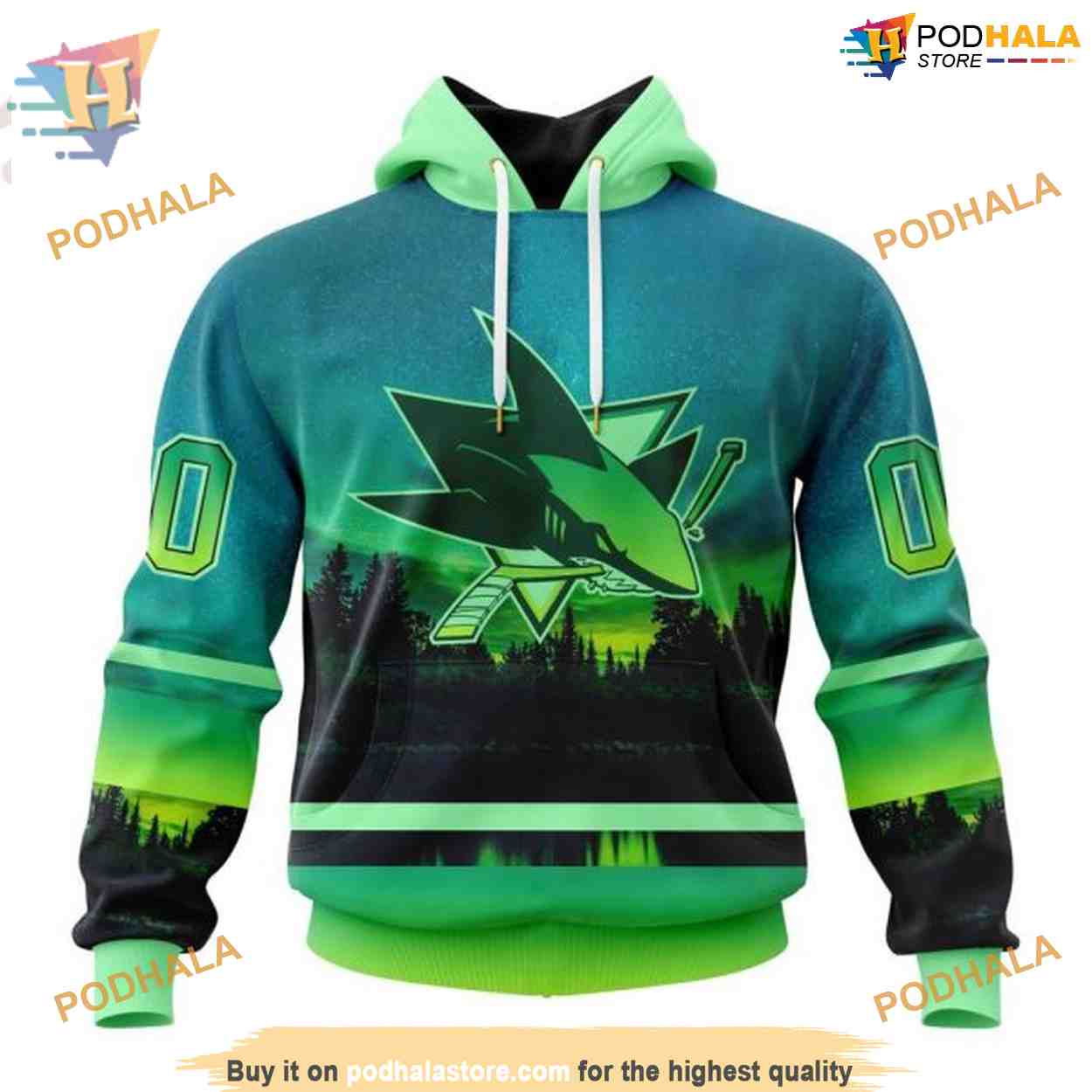 Custom NHL San Jose Sharks Hoodie 3D, Design With Northern Light Full Printed Shirt