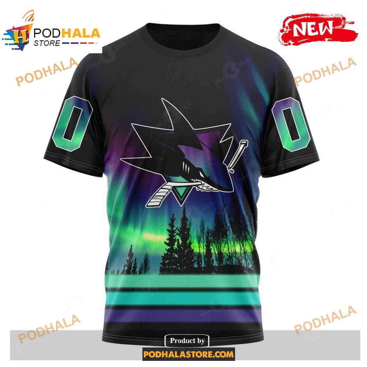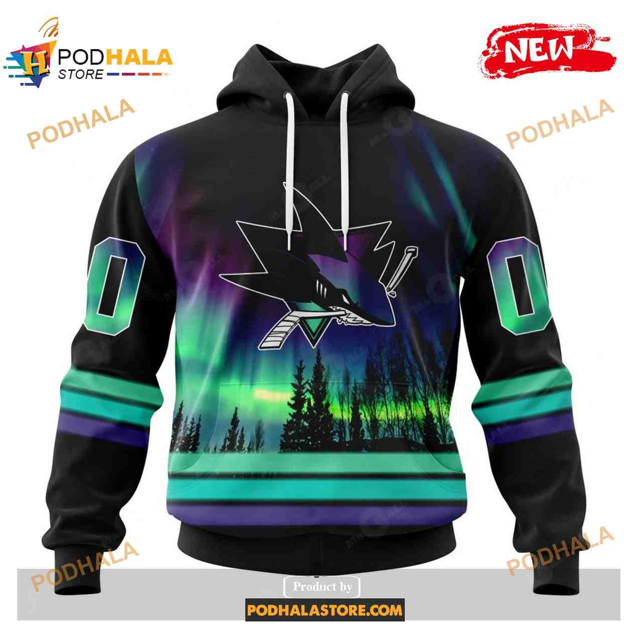 Custom NHL San Jose Sharks With Northern Lights Shirt Hoodie 3D