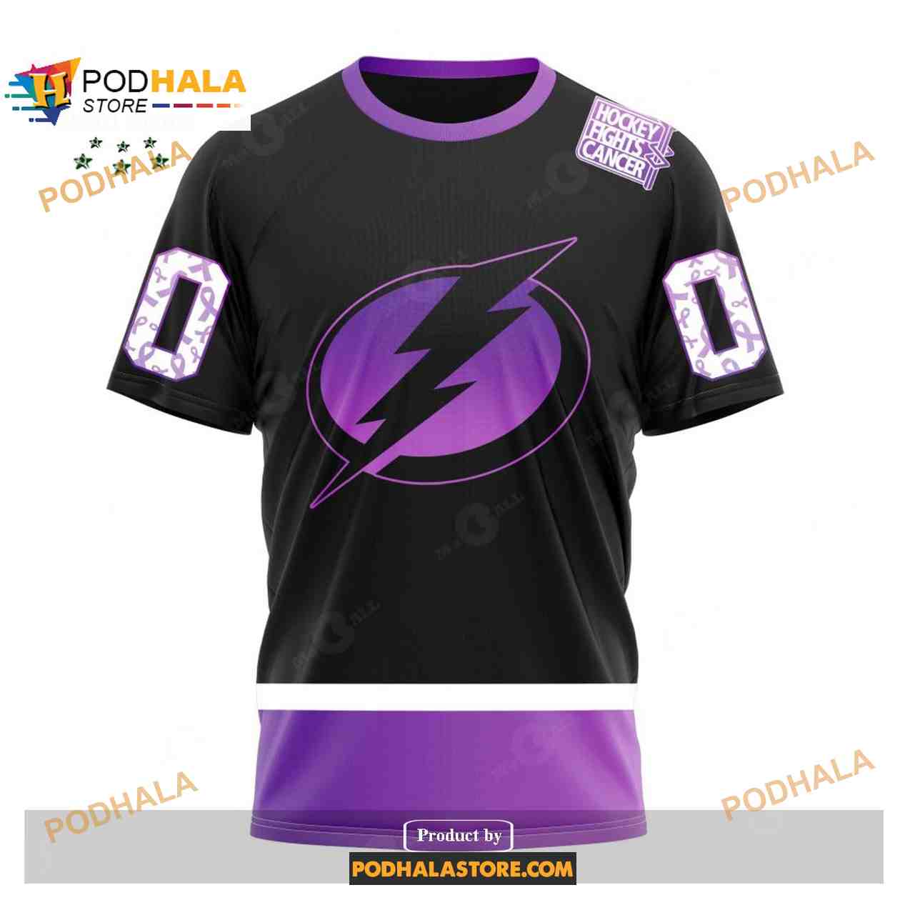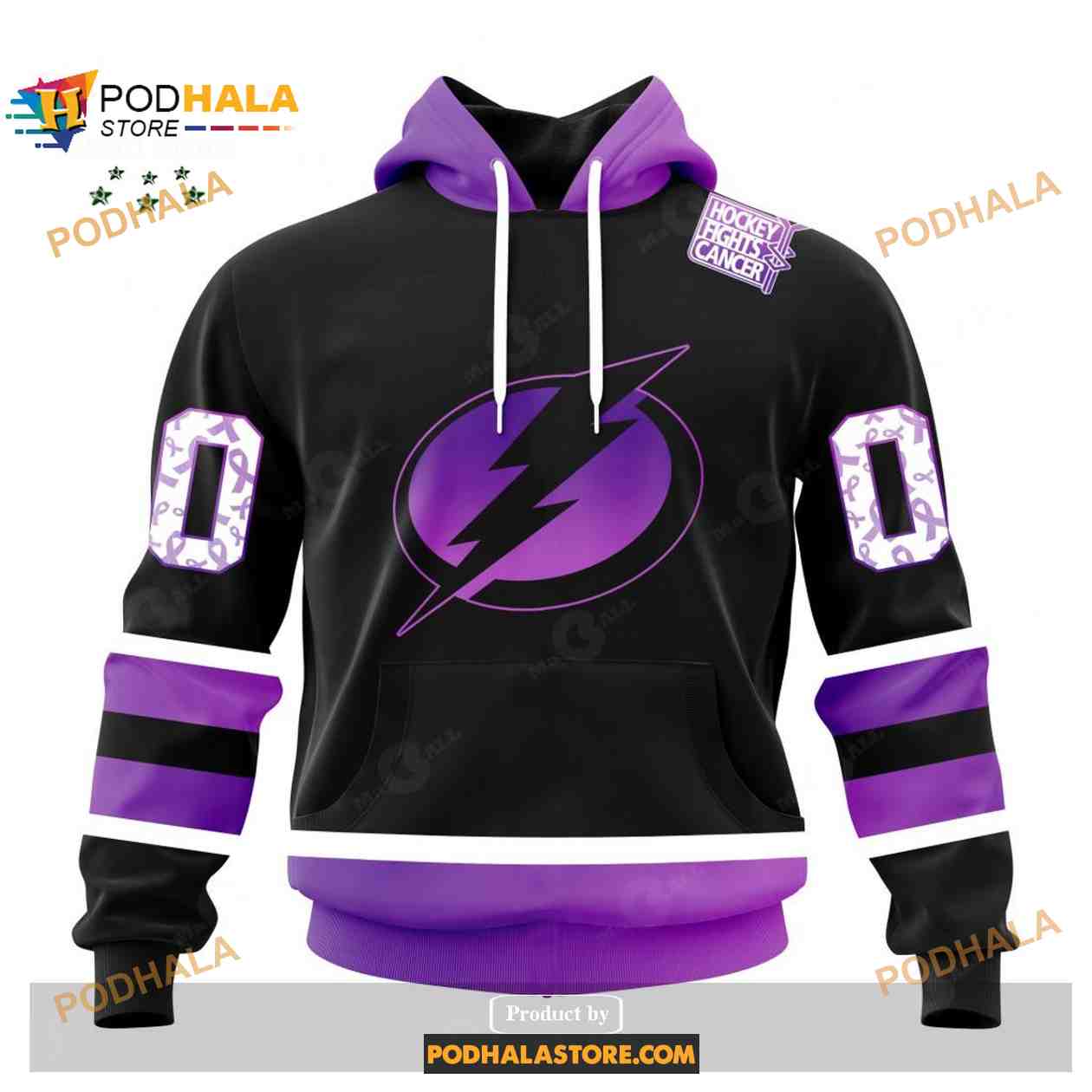 Custom NHL Tampa Bay Lightning Black Hockey Fights Cancer Shirt Hoodie 3D