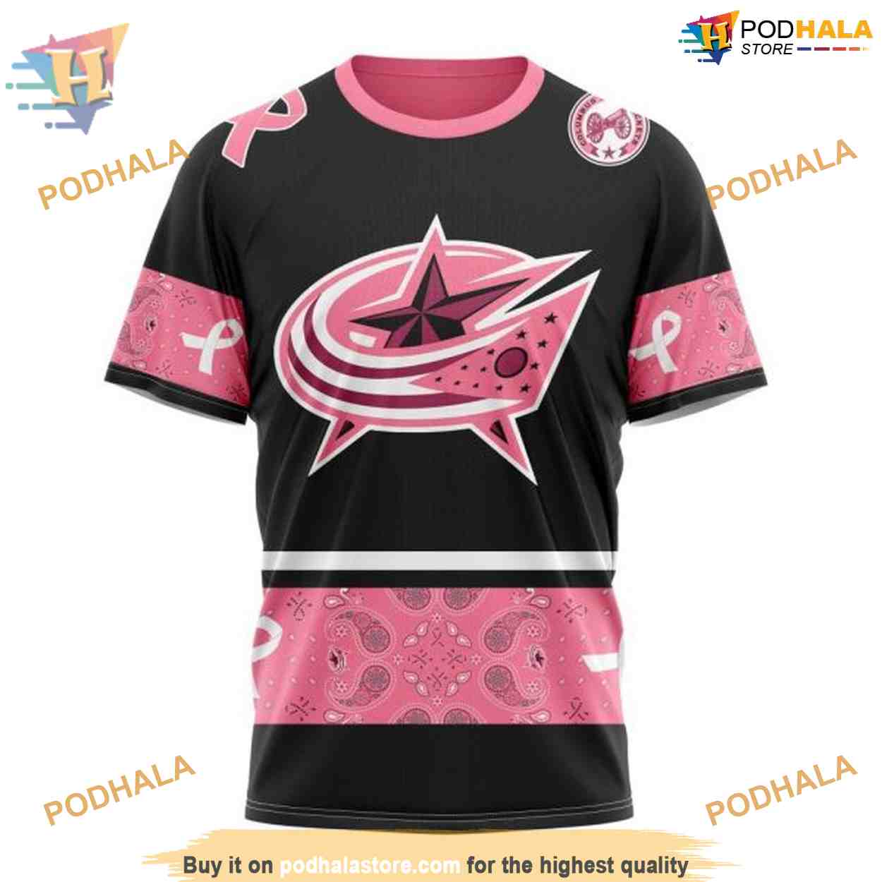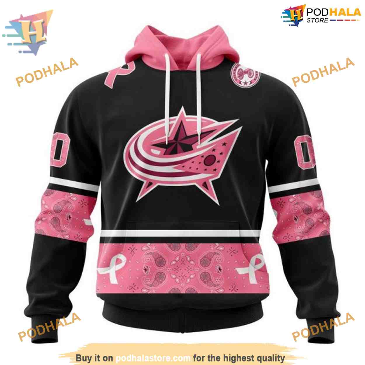 Custom PINK BREAST CANCER NHL Columbus Blue Jackets Hoodie 3D