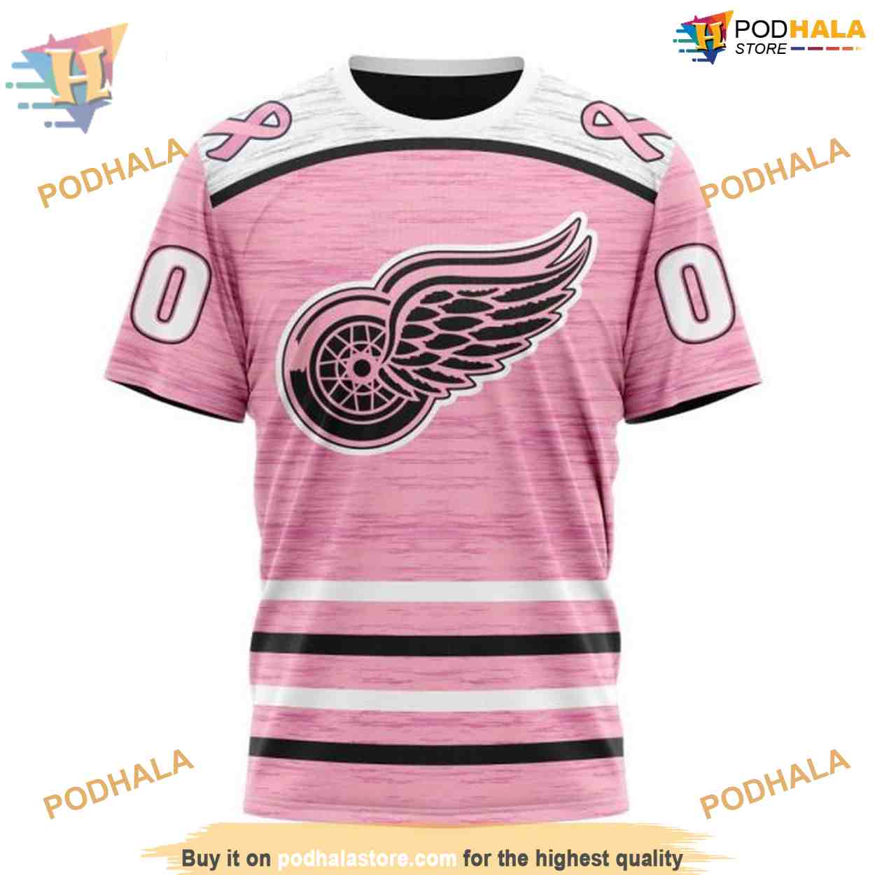 Custom Pink Fight Breast Cancer Design NHL Detroit Red Wings Hoodie 3D