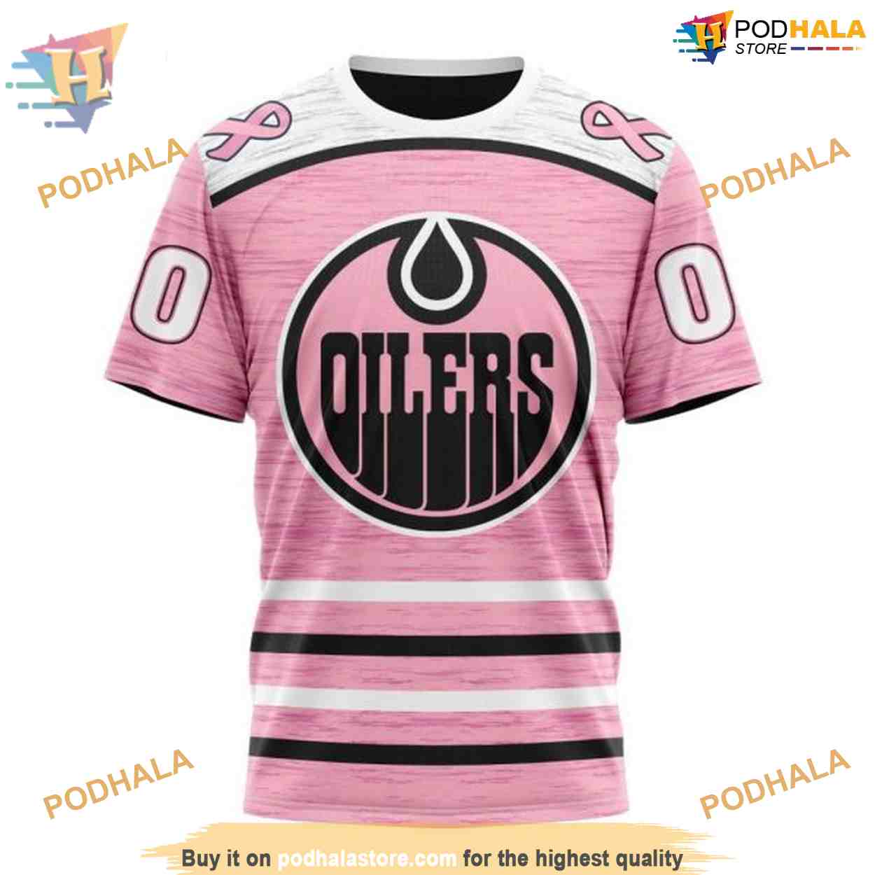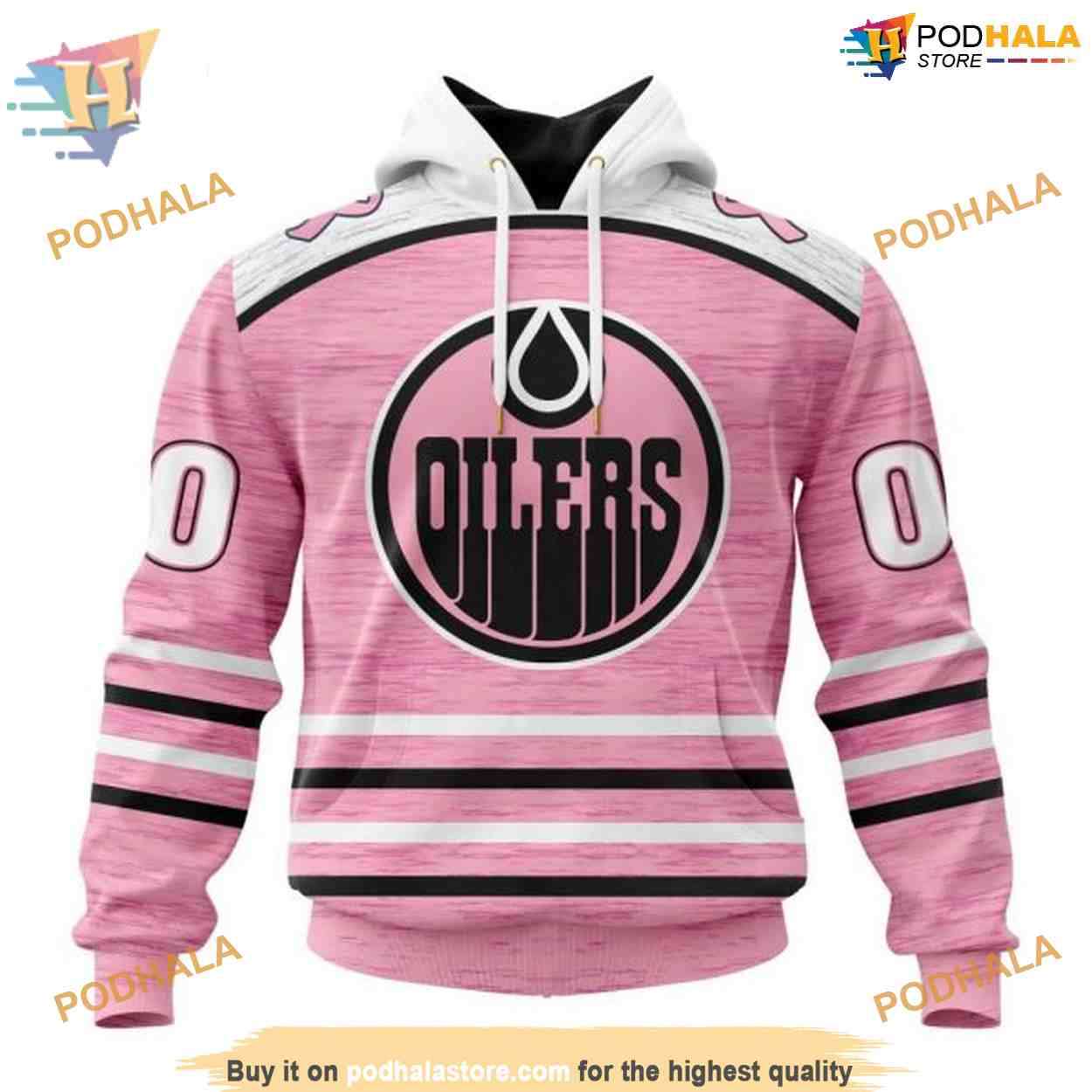 Custom Pink Fight Breast Cancer Design NHL Edmonton Oilers Hoodie 3D