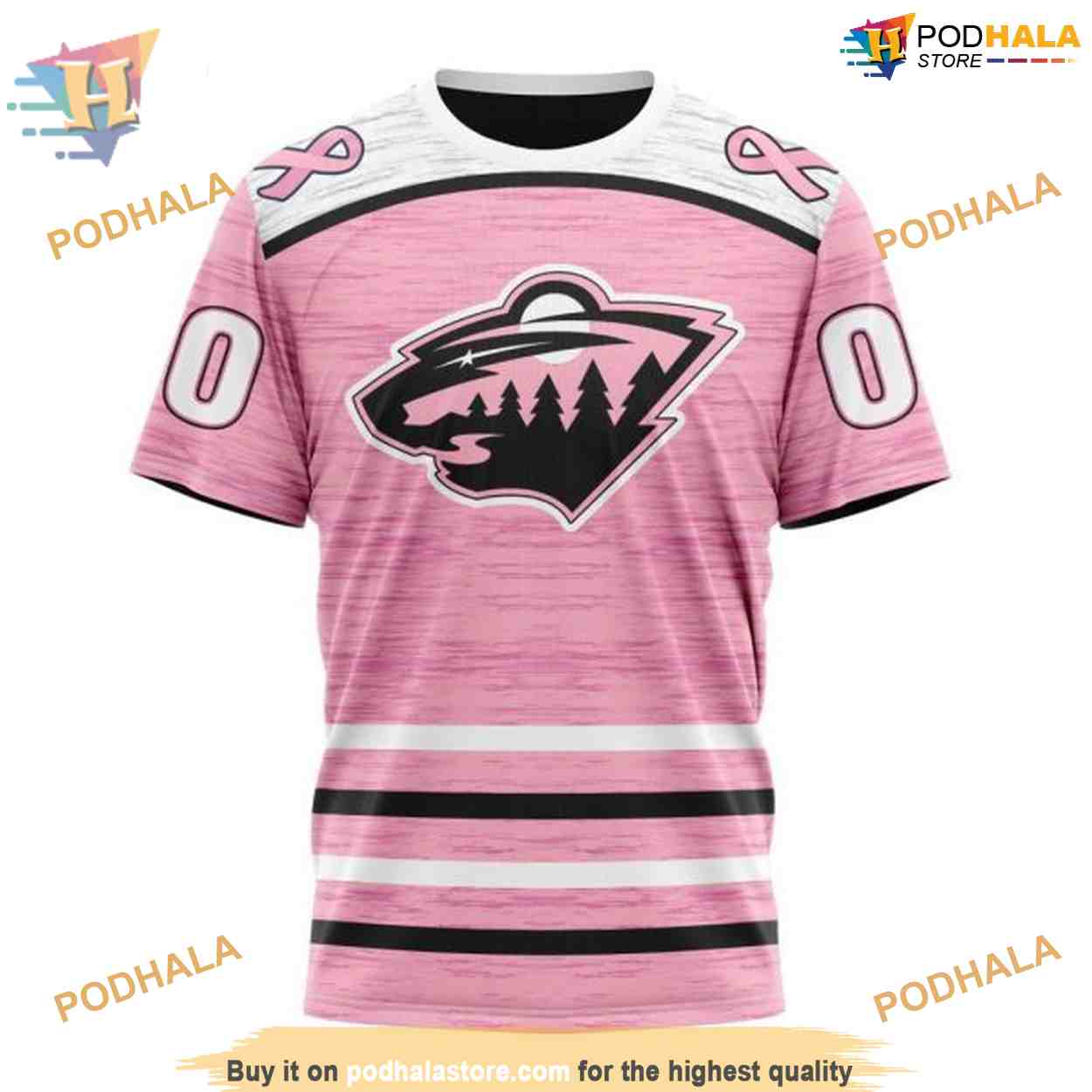 Custom Pink Fight Breast Cancer Design NHL Minnesota Wild Hoodie 3D