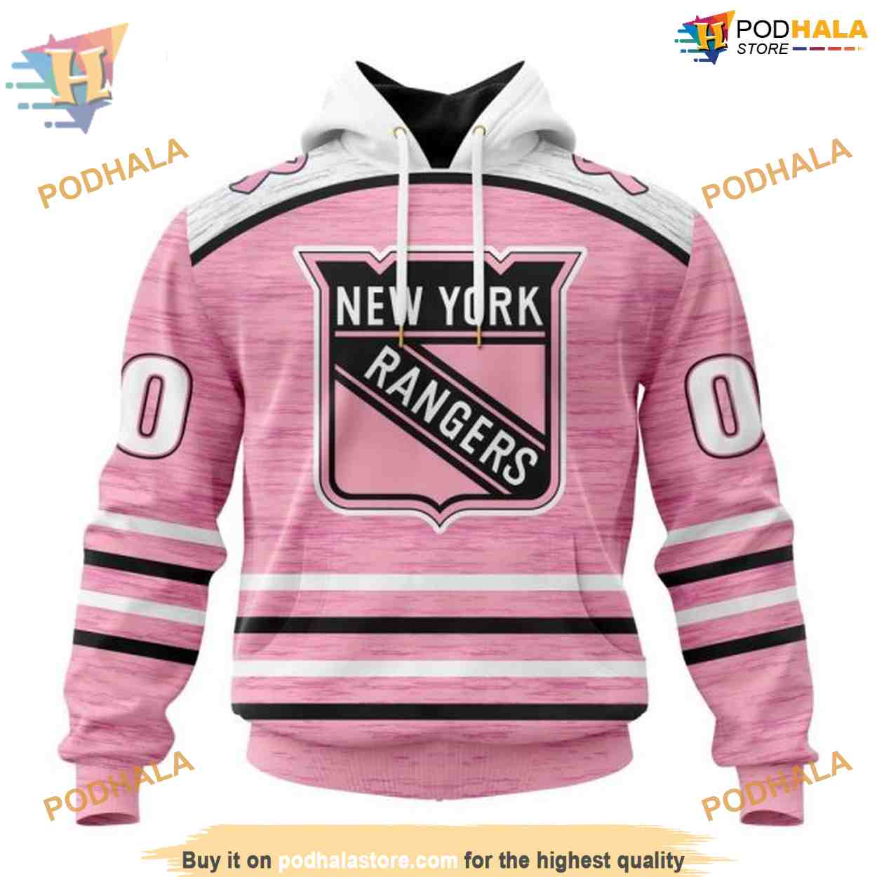 Custom Pink Fight Breast Cancer Design NHL New York Rangers Hoodie 3D