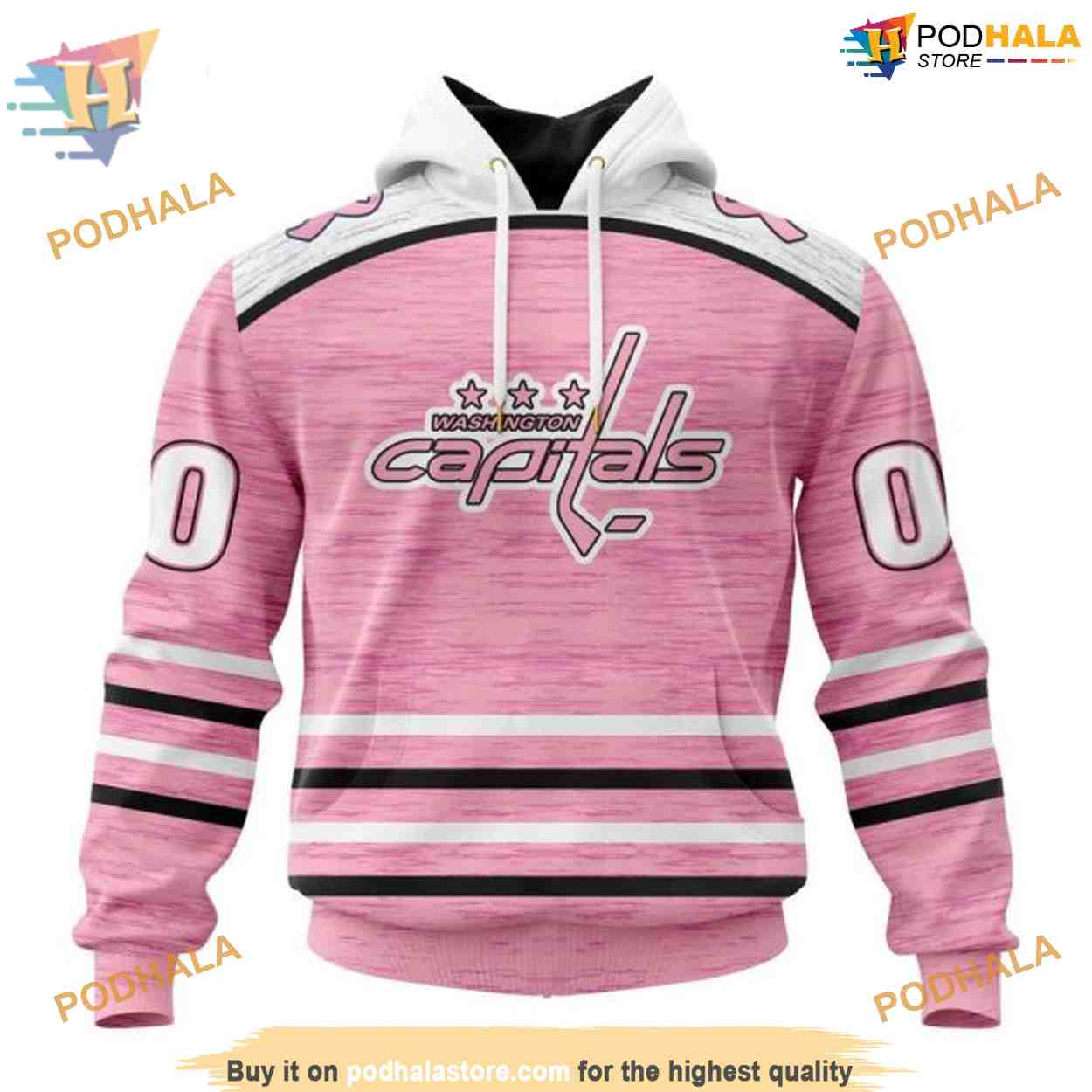 Custom Pink Fight Breast Cancer Design NHL Washington Capitals Hoodie 3D
