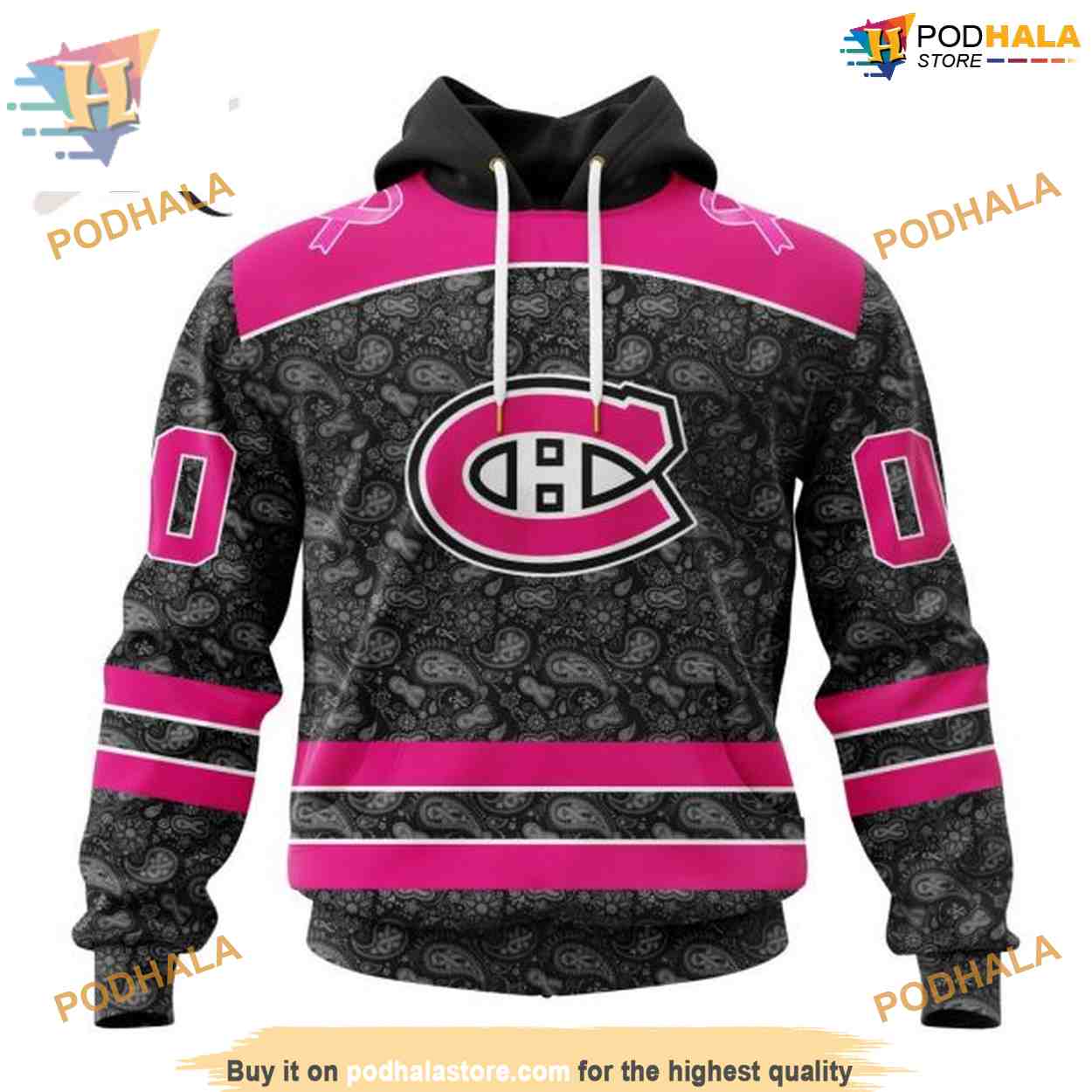 Custom Pink In The Rink Fight Breast Cancer NHL Montreal Canadiens Hoodie 3D