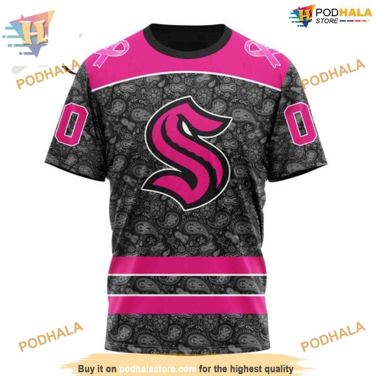 Custom Pink In The Rink Fight Breast Cancer NHL Seattle Kraken Hoodie 3D