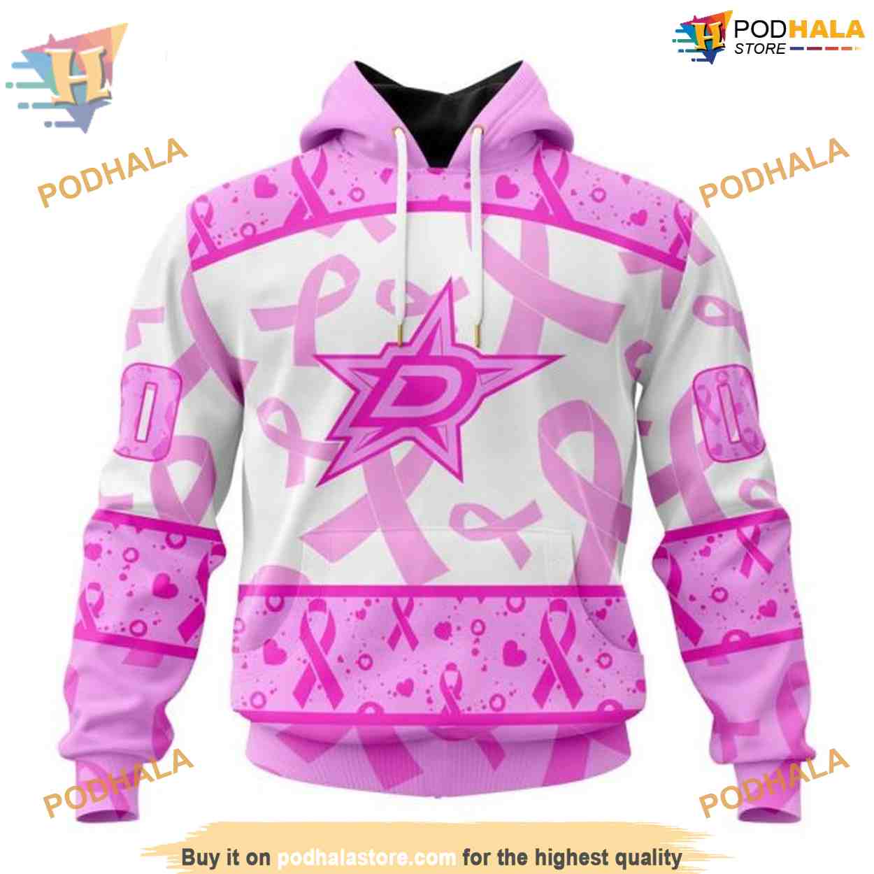 Custom Pink October Breast Cancer Awareness Month NHL Dallas Stars Hoodie 3D