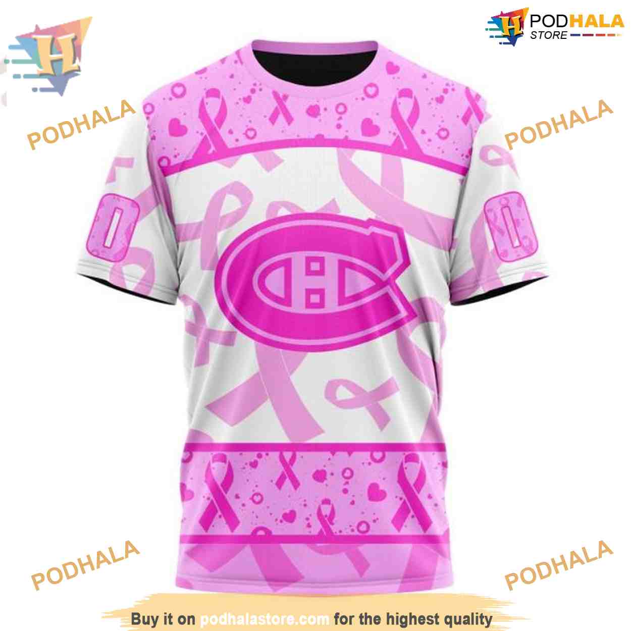 Custom Pink October Breast Cancer Awareness Month NHL Montreal Canadiens Hoodie 3D