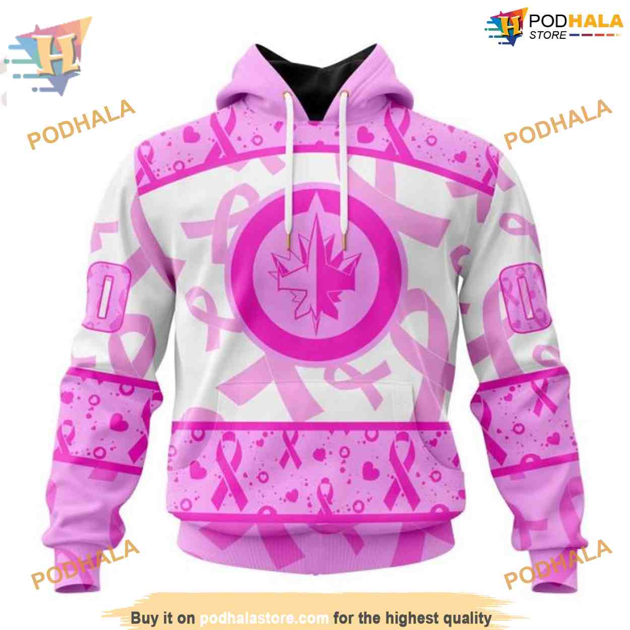 Custom Pink October Breast Cancer Awareness Month NHL Winnipeg Jets Hoodie 3D