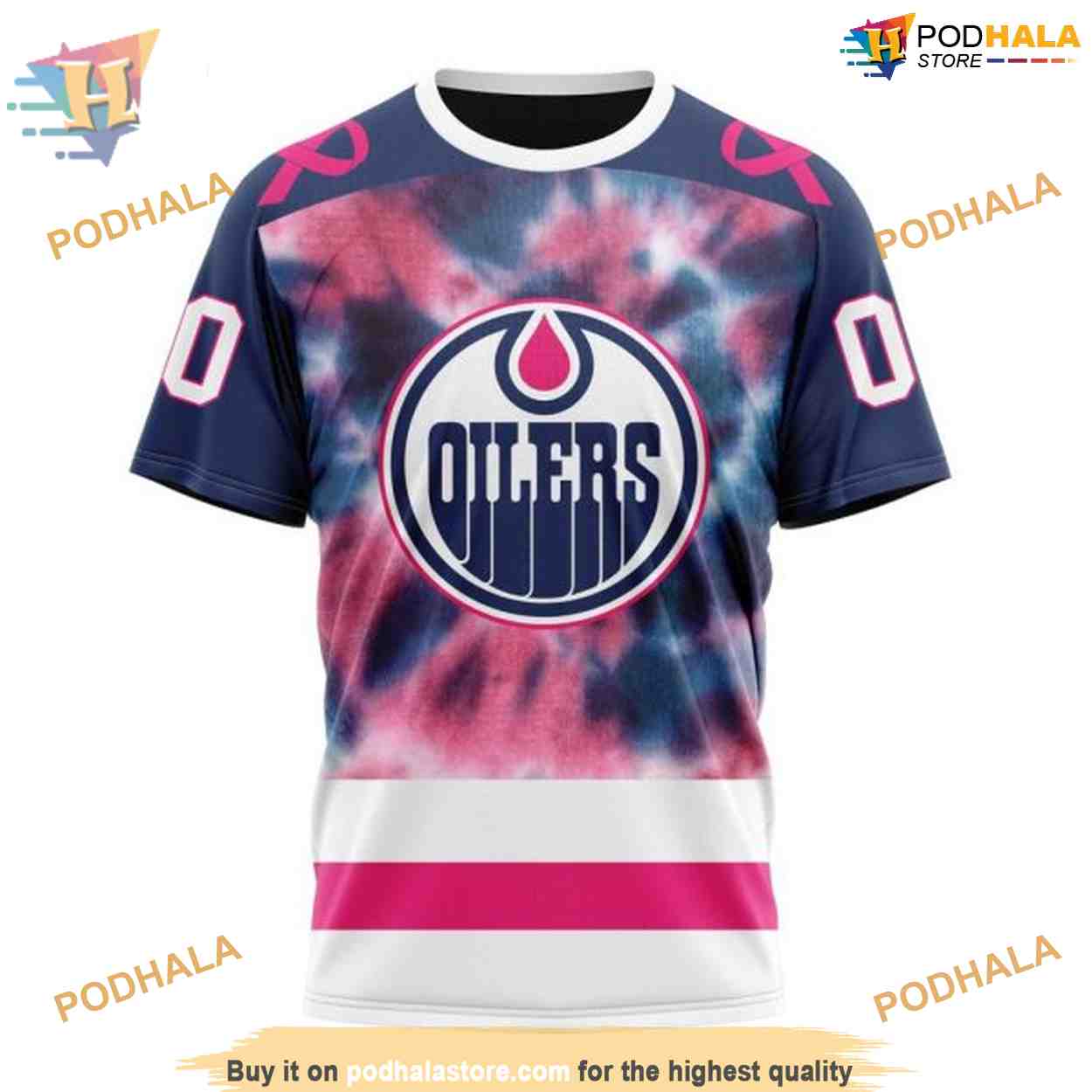Custom Pink October Fight Breast Cancer NHL Edmonton Oilers Hoodie 3D