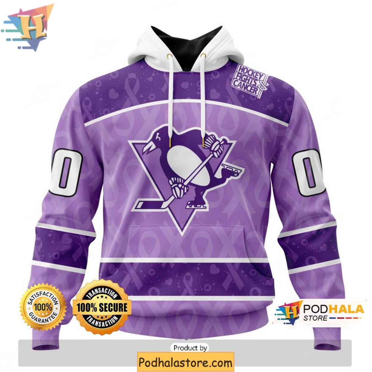 Custom Pittsburgh Penguins 3D Hoodie Lavender Design Hockey Fights Cancer Apparel