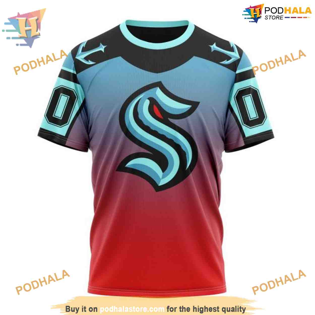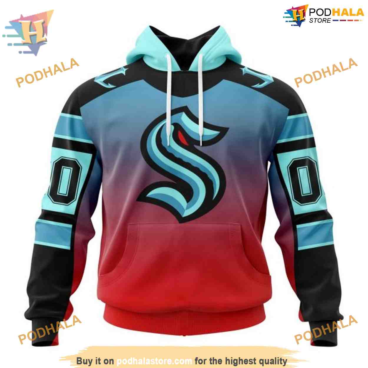 Custom Retro Gradient Design NHL Seattle Kraken Hoodie 3D