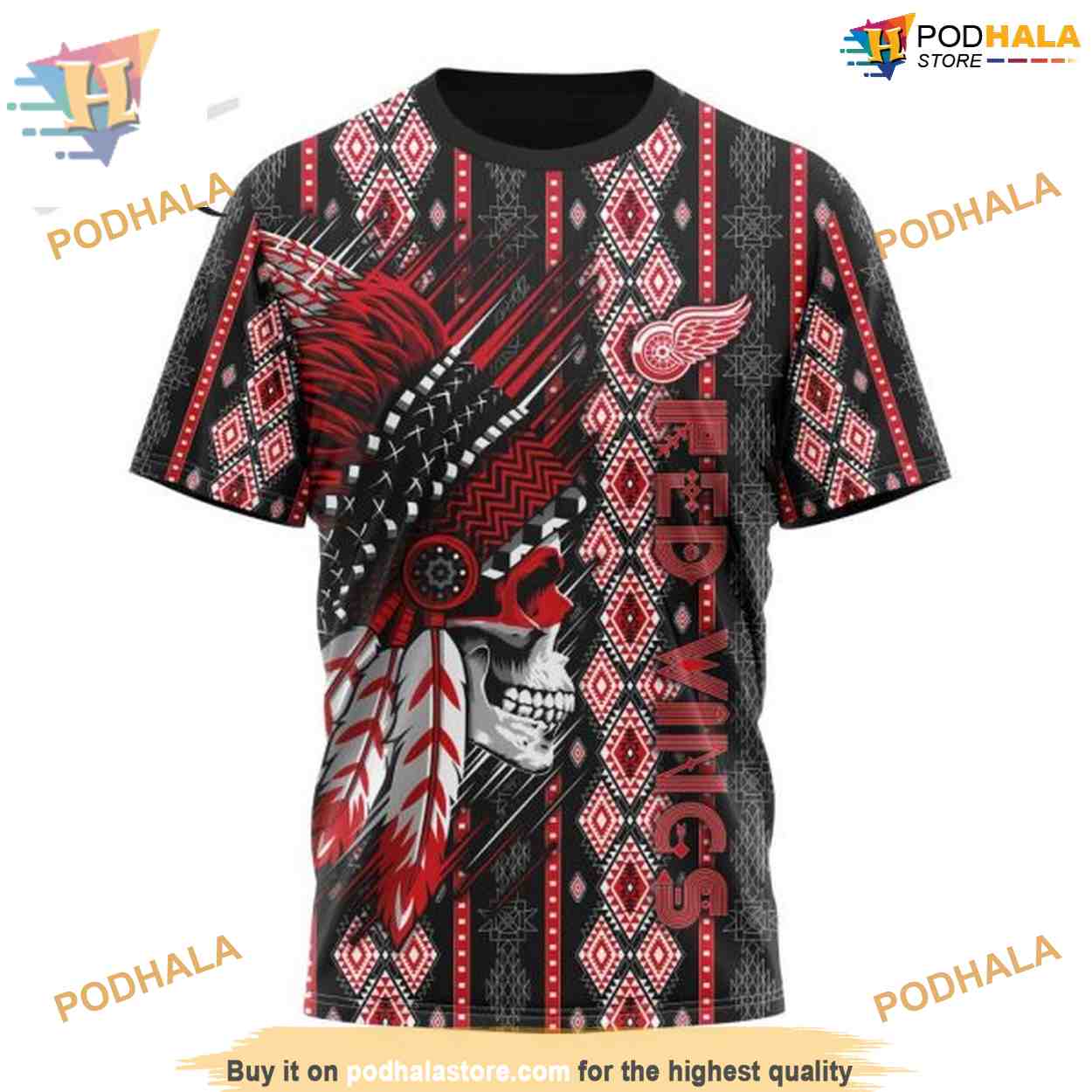Custom Skull Native Design NHL Detroit Red Wings Hoodie 3D