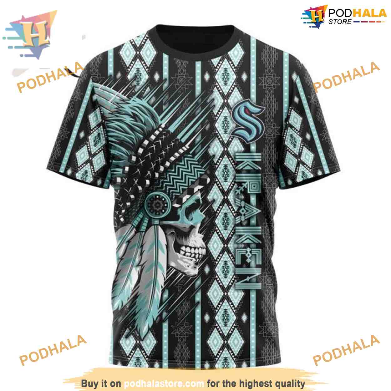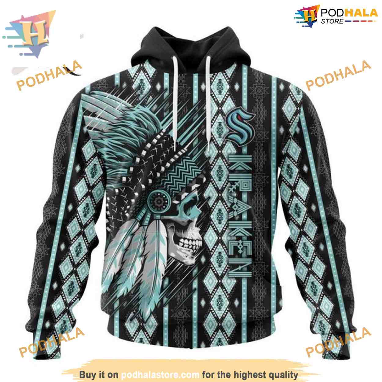 Custom Skull Native Design NHL Seattle Kraken Hoodie 3D