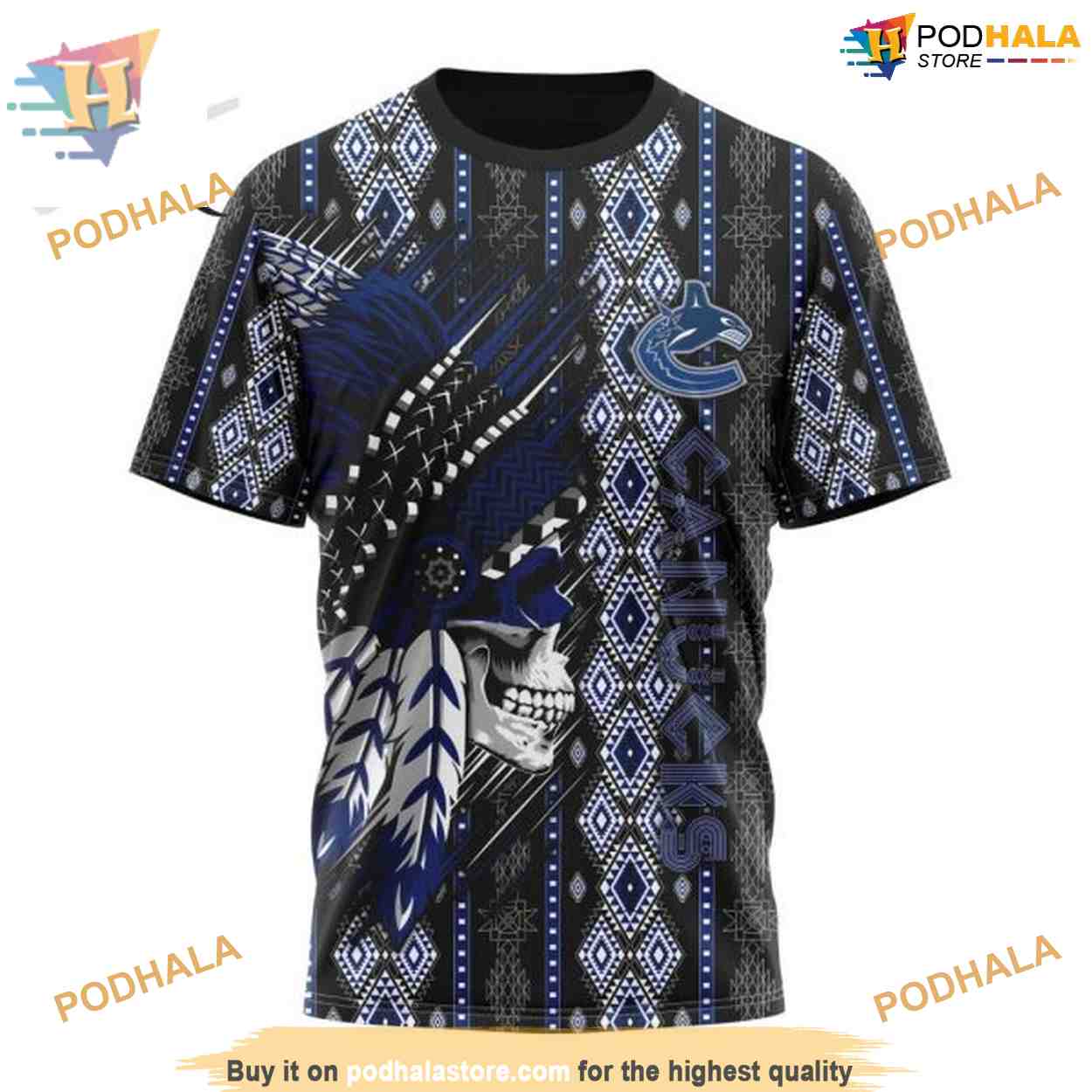 Custom Skull Native Design NHL Vancouver Canucks Hoodie 3D