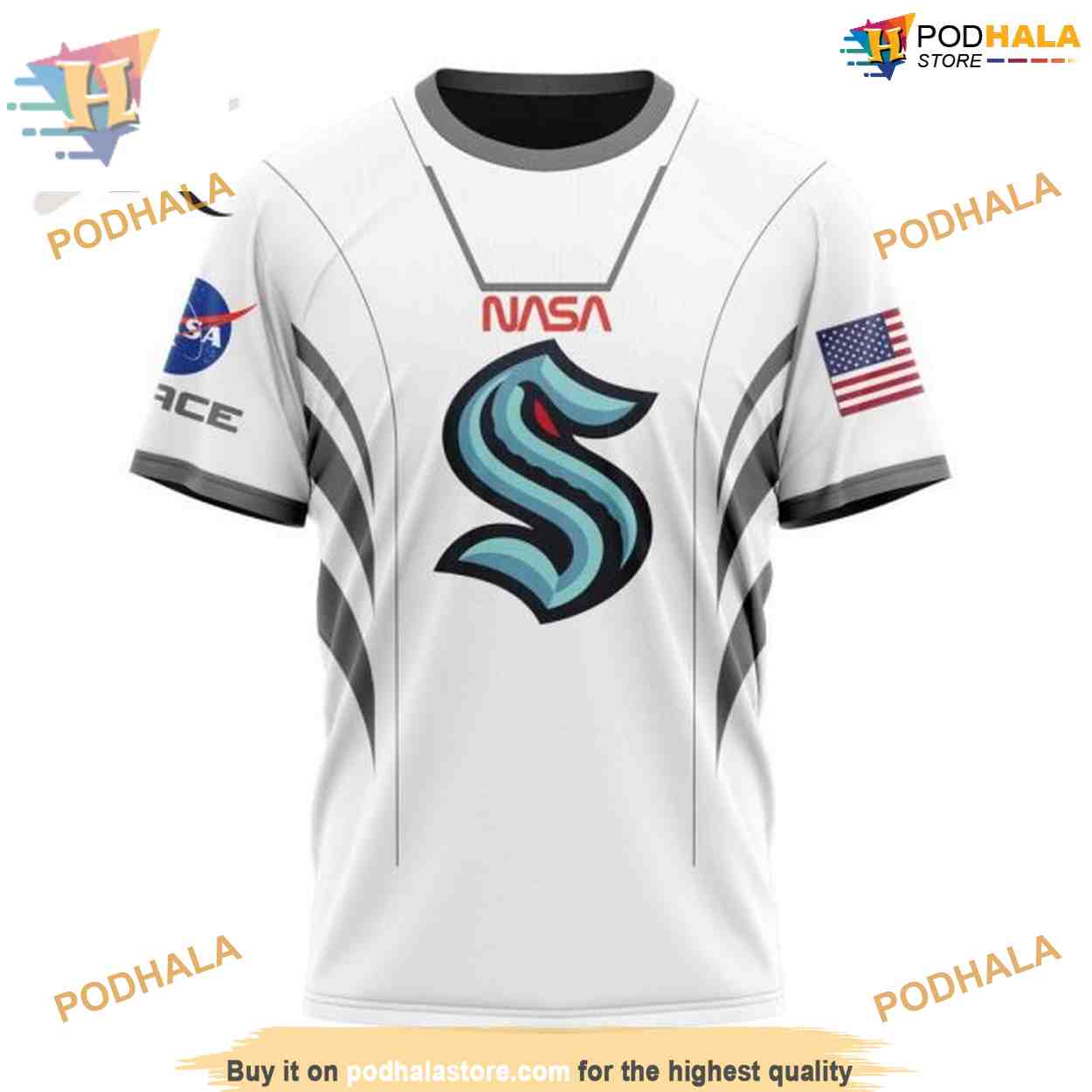 Custom Space Force NASA Astronaut Design NHL Seattle Kraken Hoodie 3D