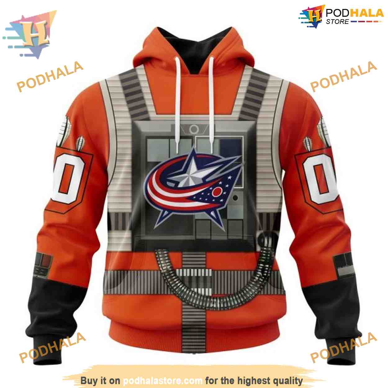 Custom Star Wars Rebel Pilot Design NHL Columbus Blue Jackets Hoodie 3D