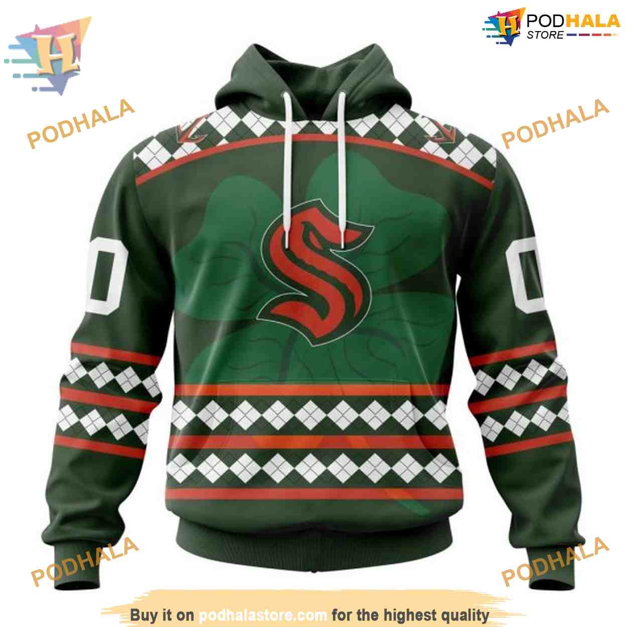 Custom Unisex Hockey Celebrate Patricks Day NHL Seattle Kraken Hoodie 3D