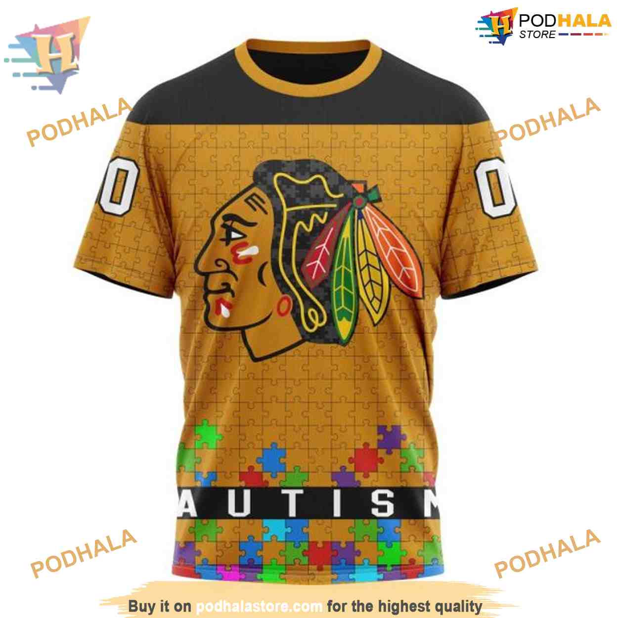 Custom Unisex Hockey Fights Against Autism NHL Chicago Blackhawks Hoodie 3D
