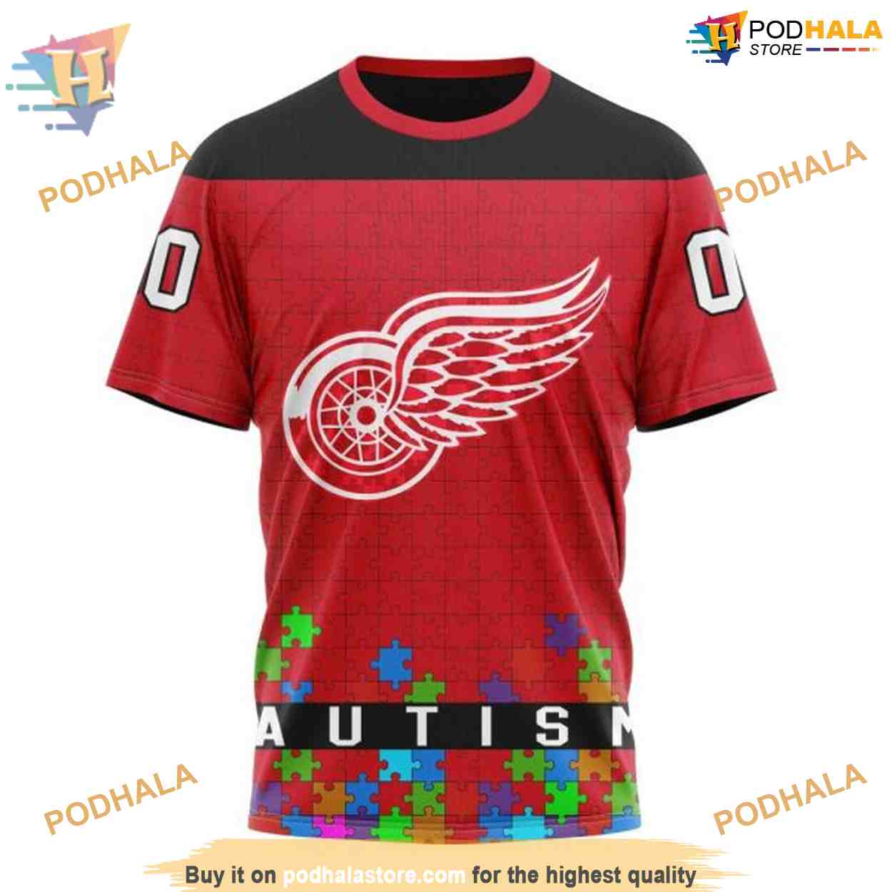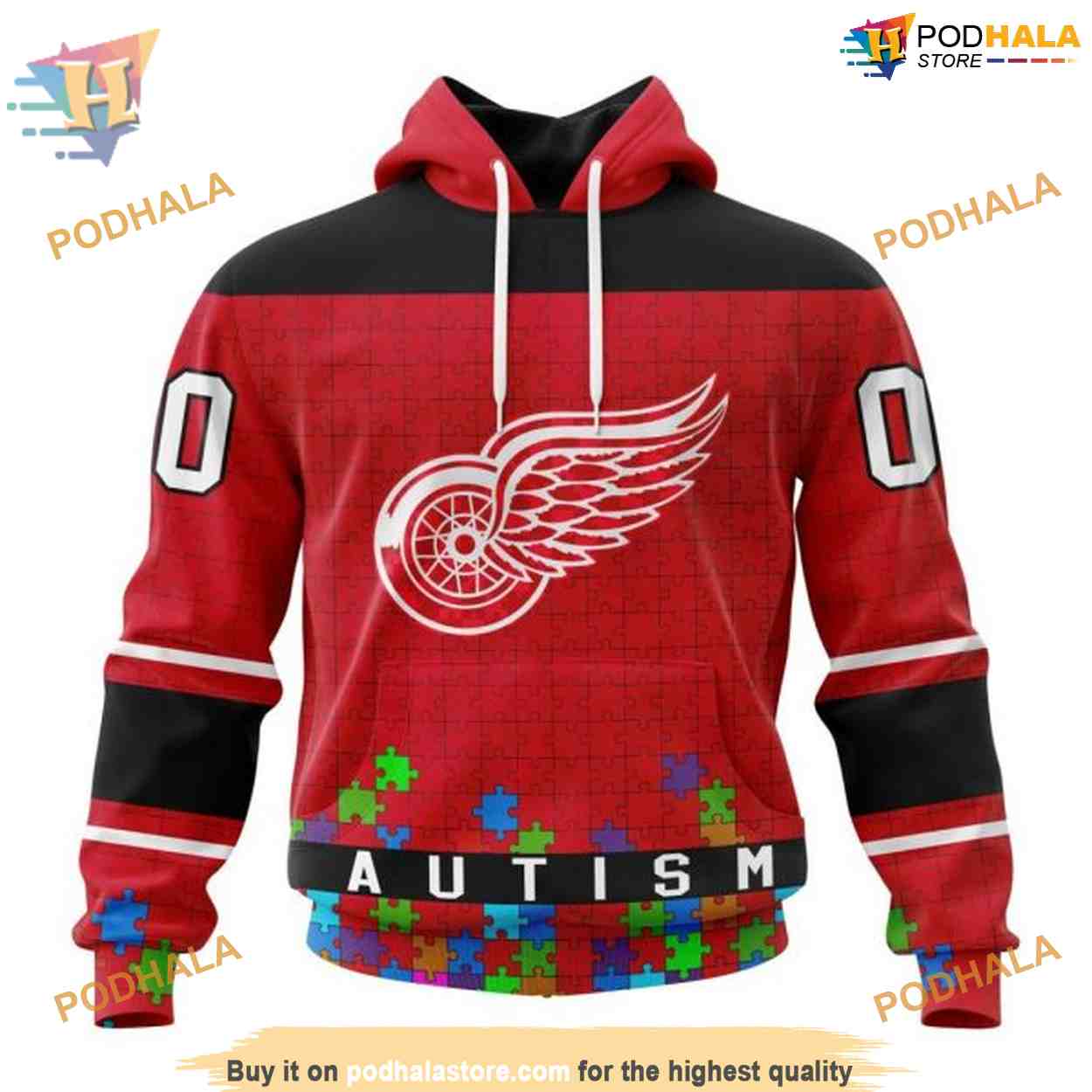 Custom Unisex Hockey Fights Against Autism NHL Detroit Red Wings Hoodie 3D