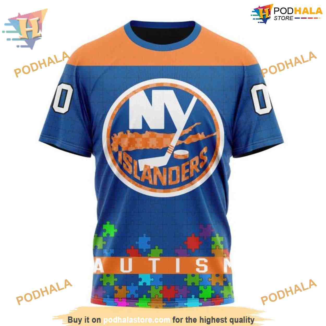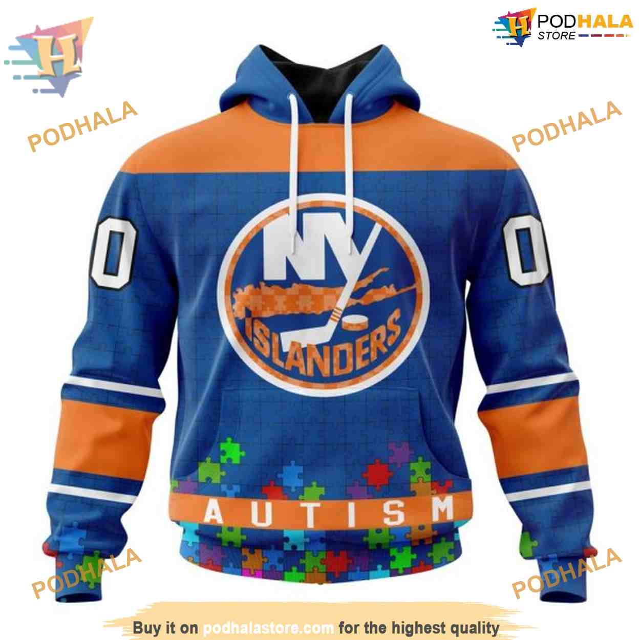 Custom Unisex Hockey Fights Against Autism NHL New York Islanders Hoodie 3D